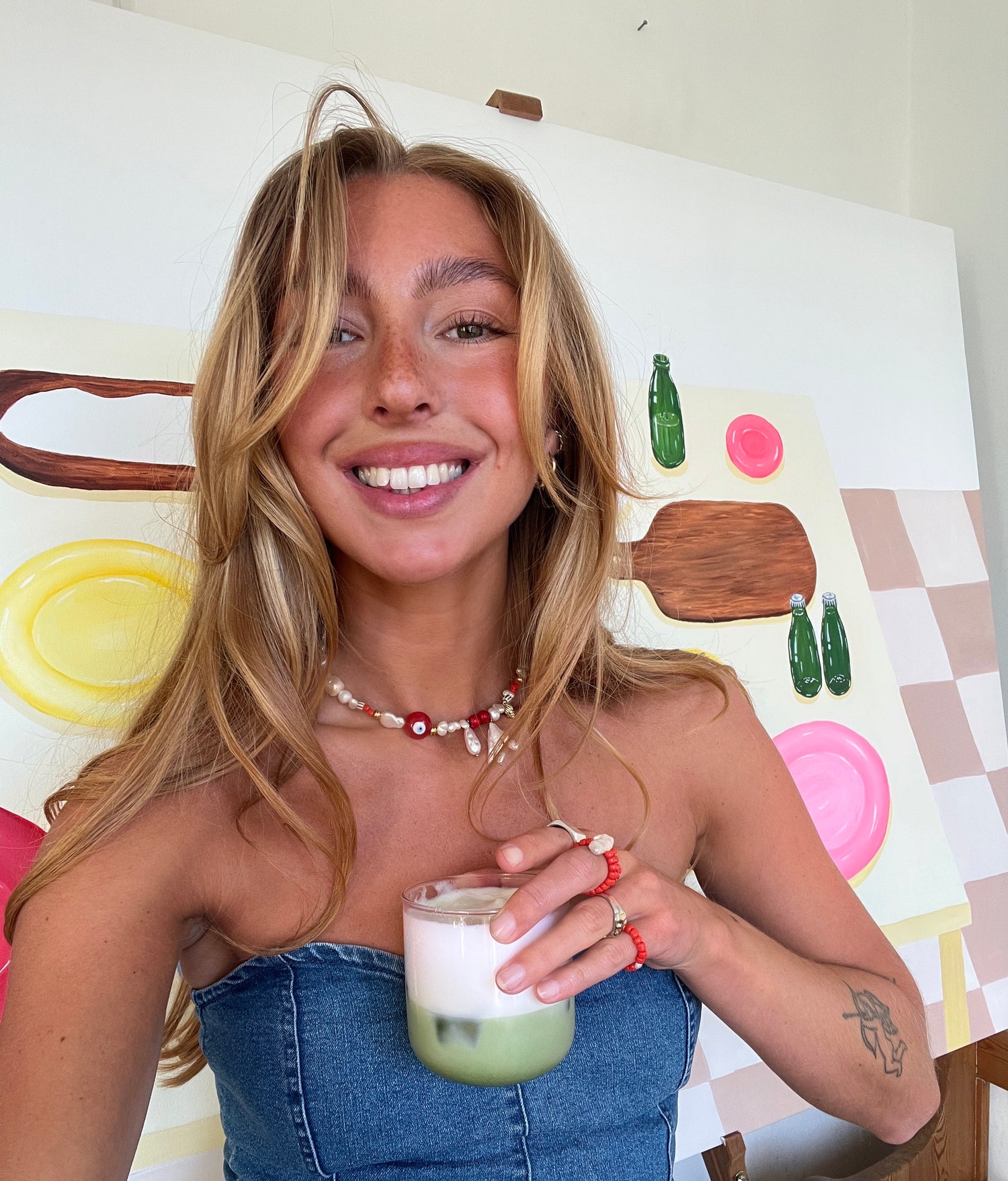 My art is inspired by snippets of life, those you wish you could save in a jar and pick up when needed. Moments like, biting into a cinnamon bun after a swim, the thrill of sipping bubbles before a night out, buttery pasta after hours in the sun, a warm forehead kiss when you need it, happy tears I try to capture this warm feeling in everything I create, and I hope that my art will convey it wherever it ends up.