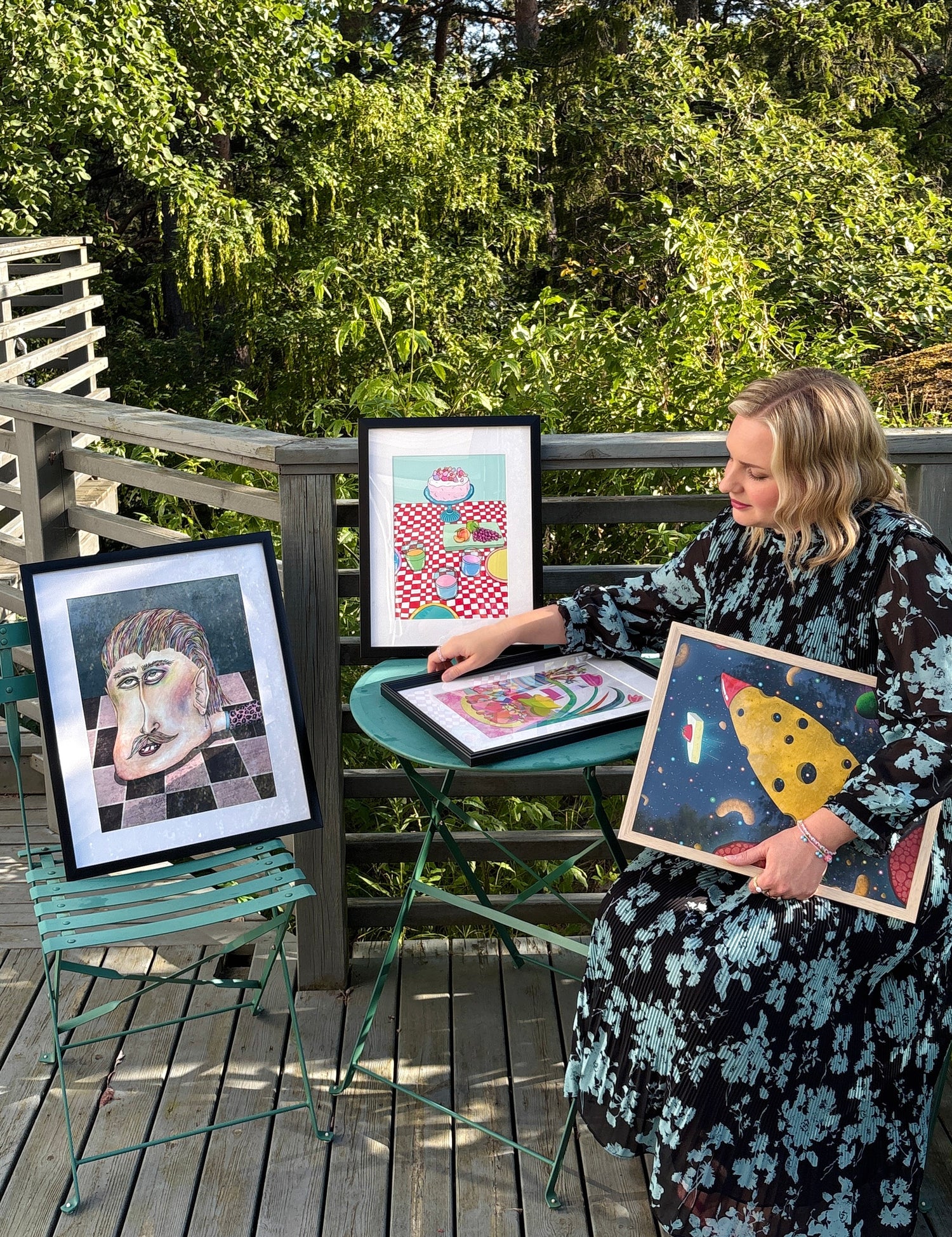 The illustrator Sandra Alkevik creates colorful art with whimsical details. Her work often features imaginative animals, bountiful dining tables, and magical plants. A love for maximalist interiors and quirky second-hand finds also finds its way into her creations.