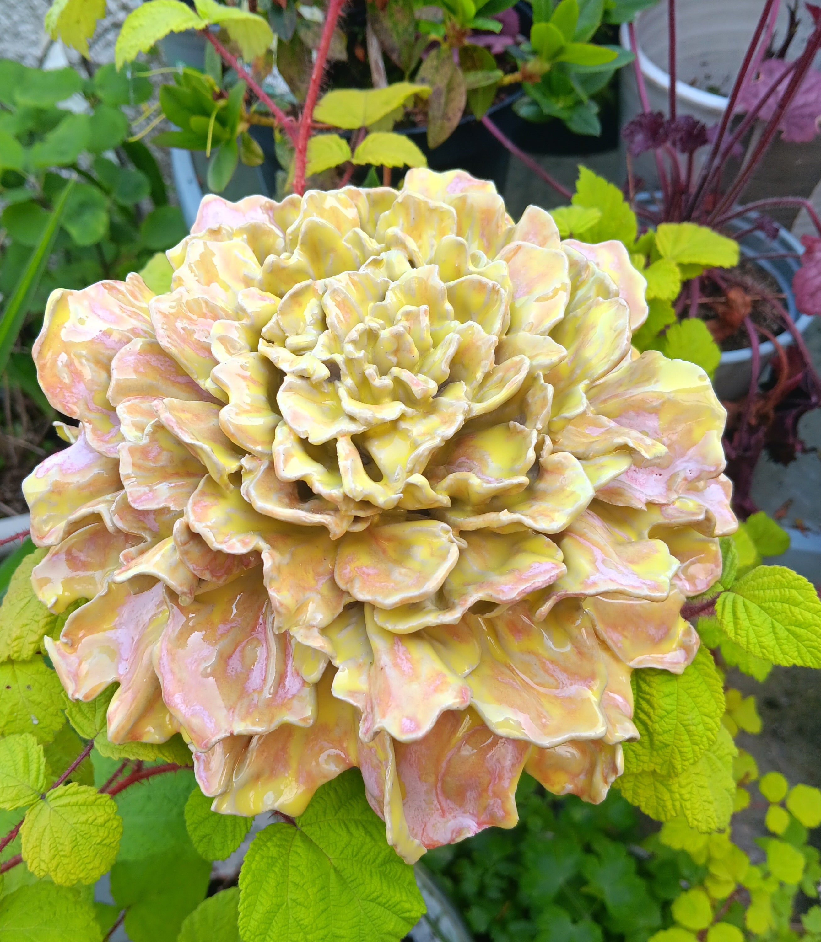 This year I started making the flowers for gardens or balconies. They are the result of many fruitless tries to make sun flowers. Some of the the failures gave me new ideas and that is often the process I am working in.