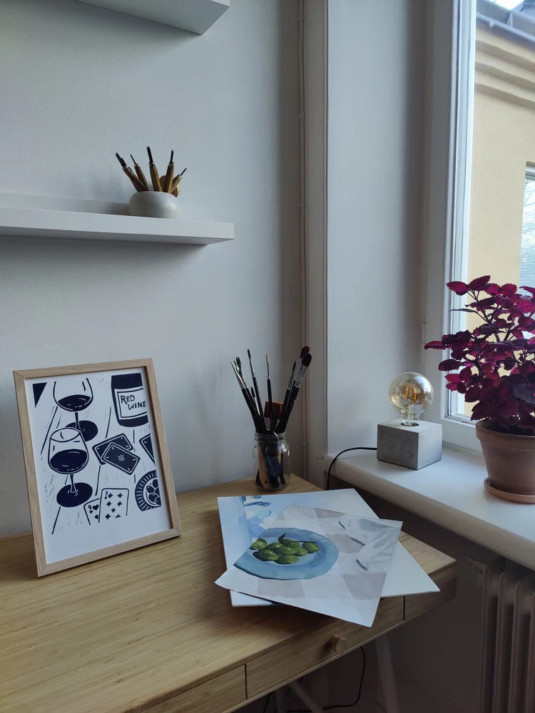 My love for linocut printing comes from my grandfather, whose tools I now use. Creating with my hands and carefully carving out images has become something very meditative for me, and I love that each print is unique. I draw inspiration from nature and the beautiful details of everyday life.