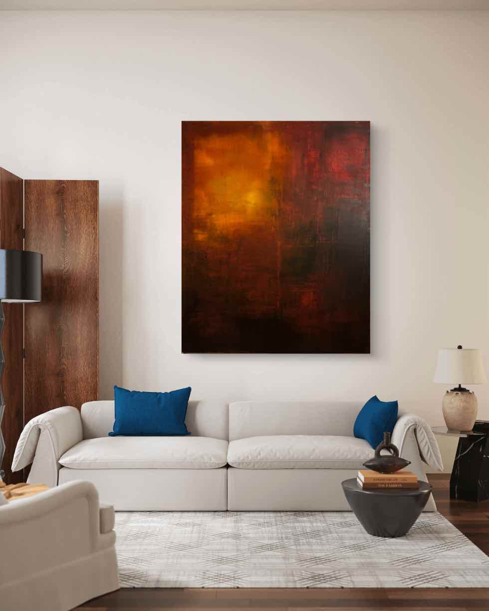 I’m a Stockholm based, self-taught abstract painter. I’ve always been creative but painting feels so natural, effortless in a way nothing else has. Working primarily with acrylic on canvas, I paint intuitively, without sketches or plans. I blend colors directly on the canvas and let the shapes guide me. Horizons and layered fields appear often. My work is inspired by summers in the Swedish mountains, long strolls and berry picking in the forest, sunny summer days in the archipelago, the quiet comfort of being alone in nature. I’m drawn to blues, reds and greens, to muted landscapes and soft transitions, to spaces where you can breathe.