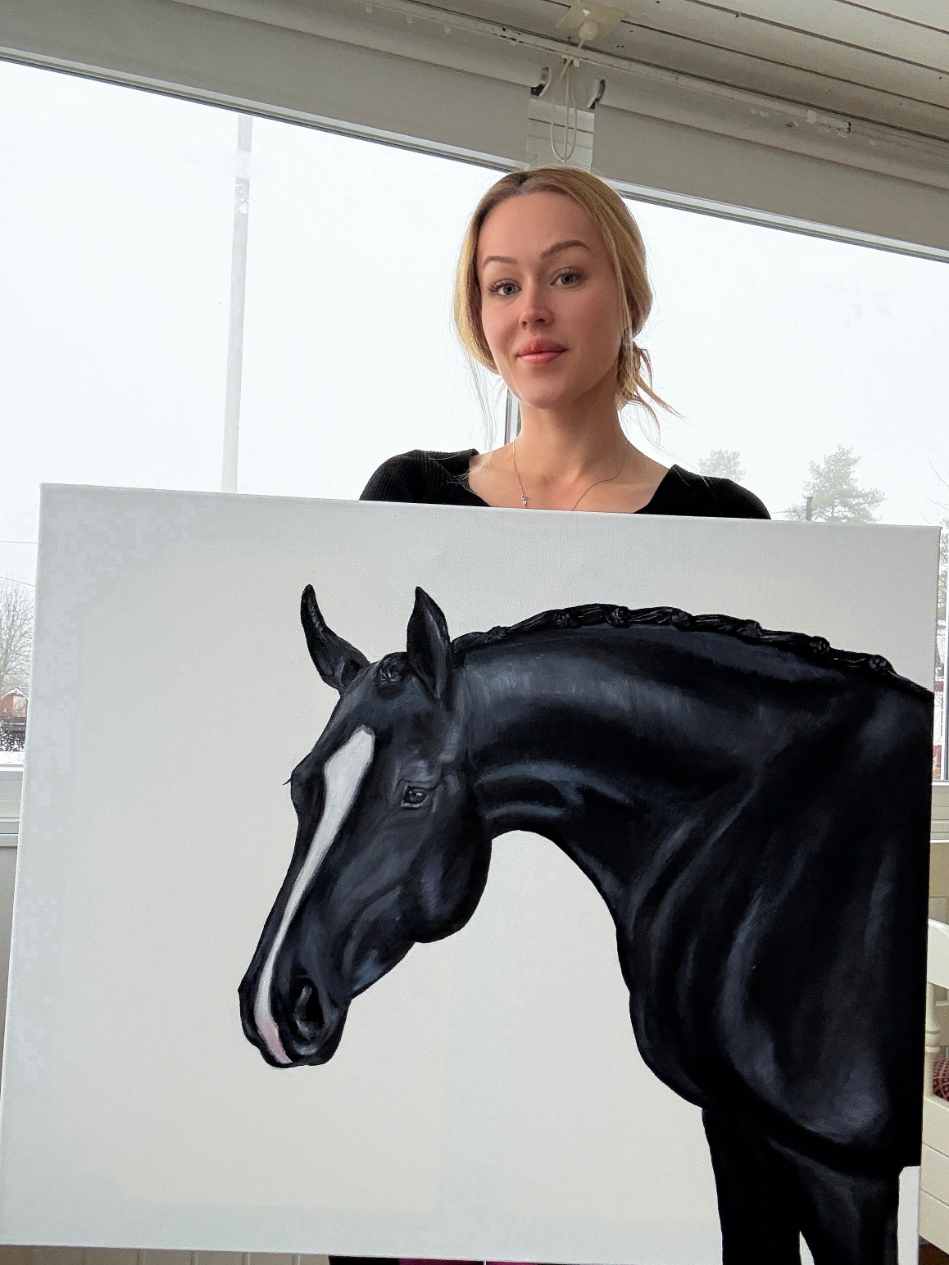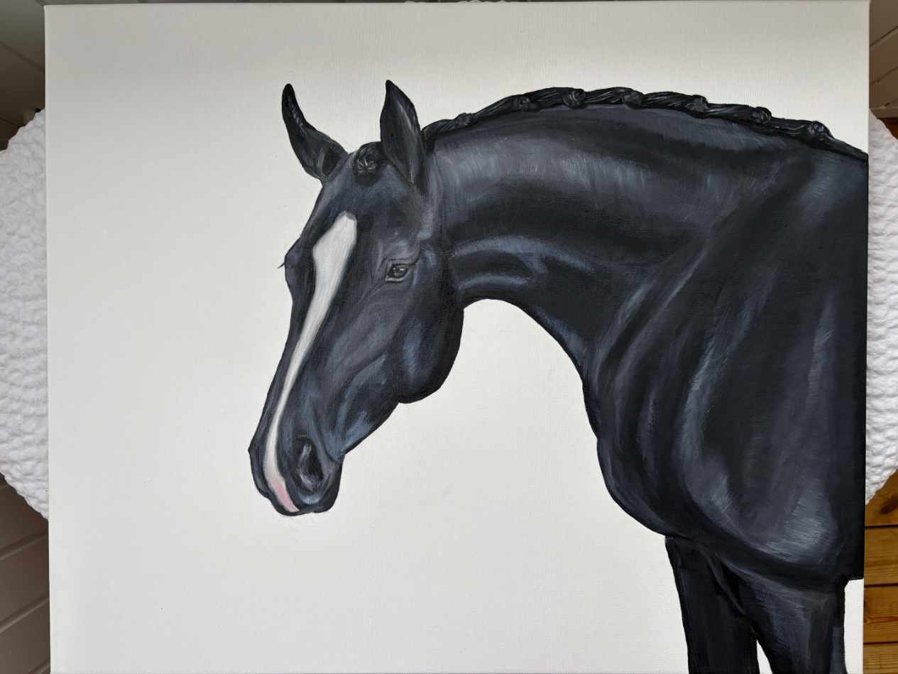 from Northvolt operator to artistry - when I was laid off from my former employment at Northvolt I found my way back to painting again after years of hiatus. My work is mostly inspired by the equestrian lifestyle with a modern touch to it which can be seen in both subject and color palette. I create my own originals and I also do commissions in the same classic style of riders private horses or motifs. Except for equine art, swedish nature is also a common theme in my work.