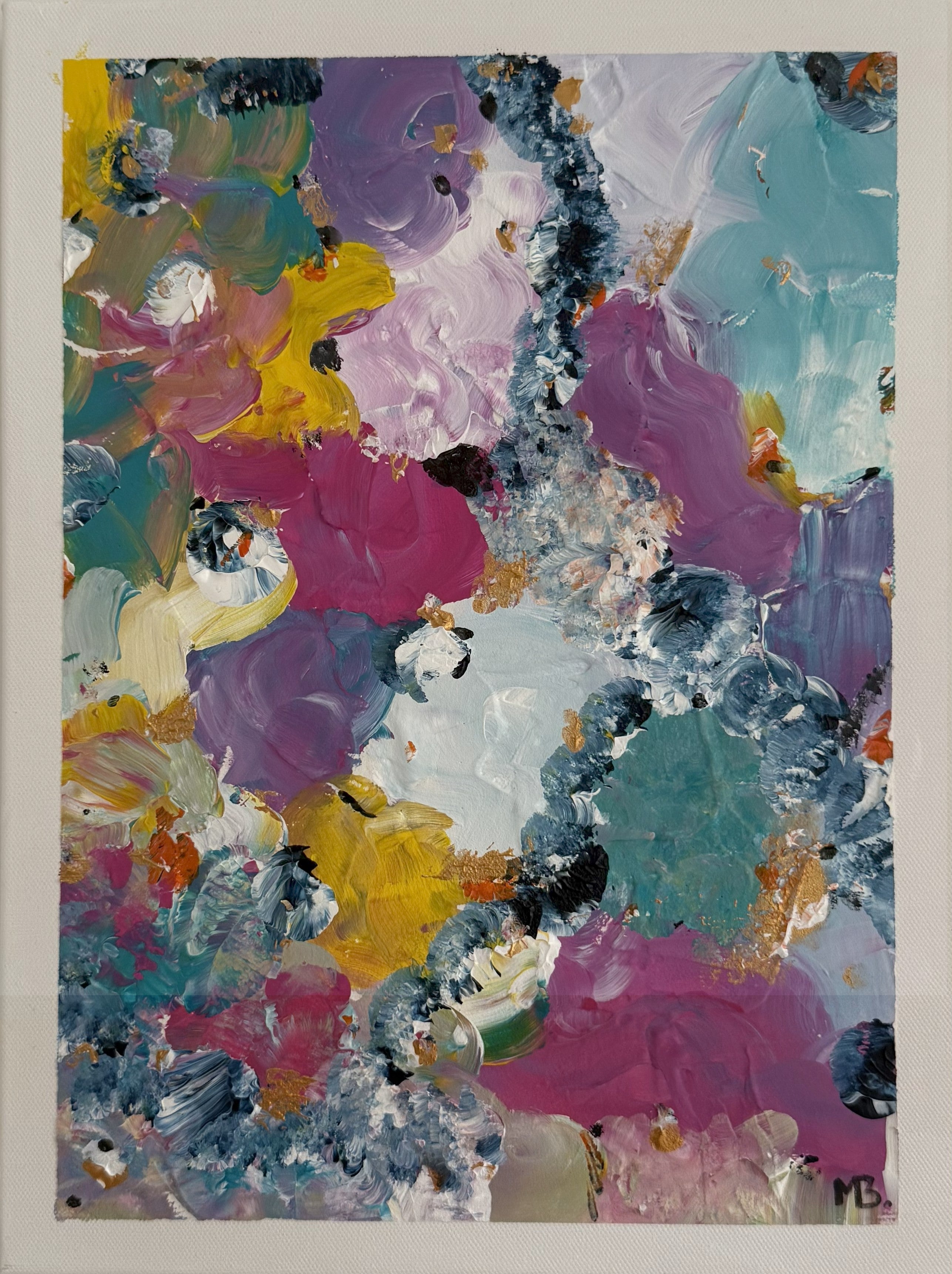 Blooming Fragments – Small Abstract Painting 30x40 cm, Original