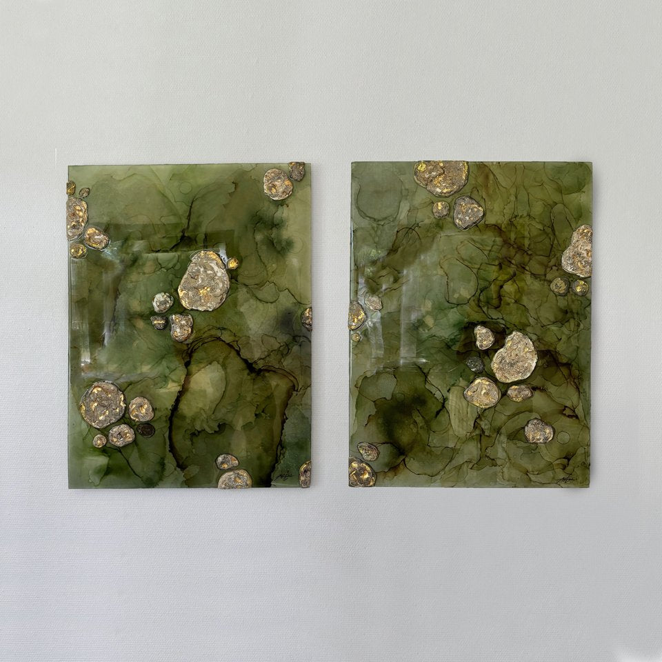 I use multiple types of media to make my art stand out, and what really does the work is the way I combine layers of Resin, Talc and 24K Gold.