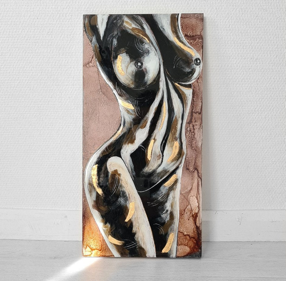 Nude art with both Acrylics and Resin on mixed canvases (Metal and Wood).