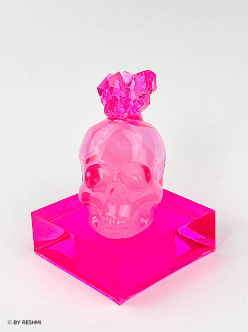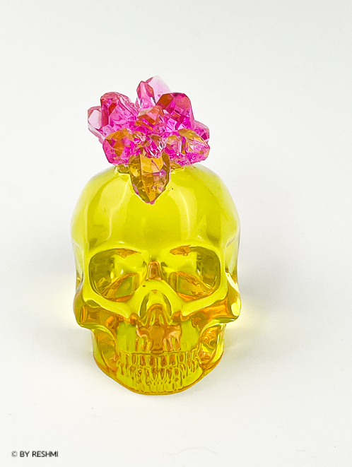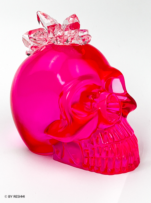 Rebel Art for Fearless Souls Carina Reshmi is a self-taught Swedish resin sculptor living at Falsterbonäset south of Sweden and in the heart of Berlin. Carina is known for her resin skulls with crystal cluster mohawks in strong and vibrant colors. The mix of collectible sculptures and designer pop-art is a result from a life time of searching for the spiritual truth and the truth about the eixisting final death. What is true and what is false? Do we live forever or are we really dead after we die. The skull and the crystal cluster mohawk is a contradiction in itself, the skull for final death and crystal cluster for spiritualism and the belief that we will all live again. The thought brings hope and hope is what we need. Contact