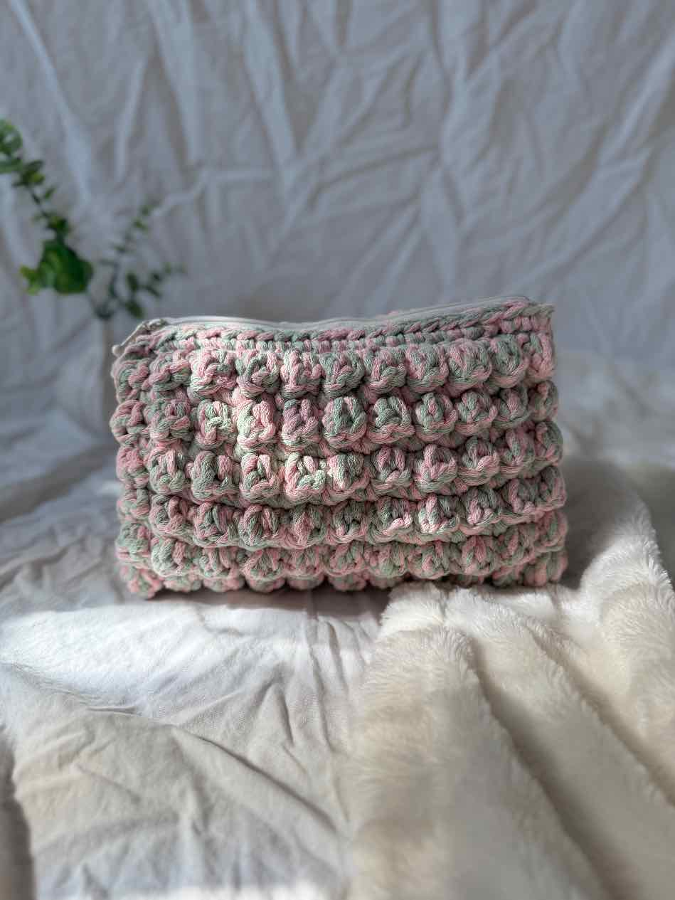 My name is Amanda, and I have a true passion for crocheting bubble stitches — which is why I primarily create bubble-stitched cosmetic pouches.