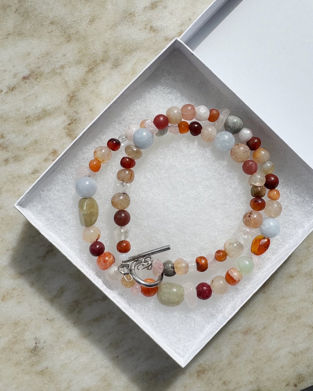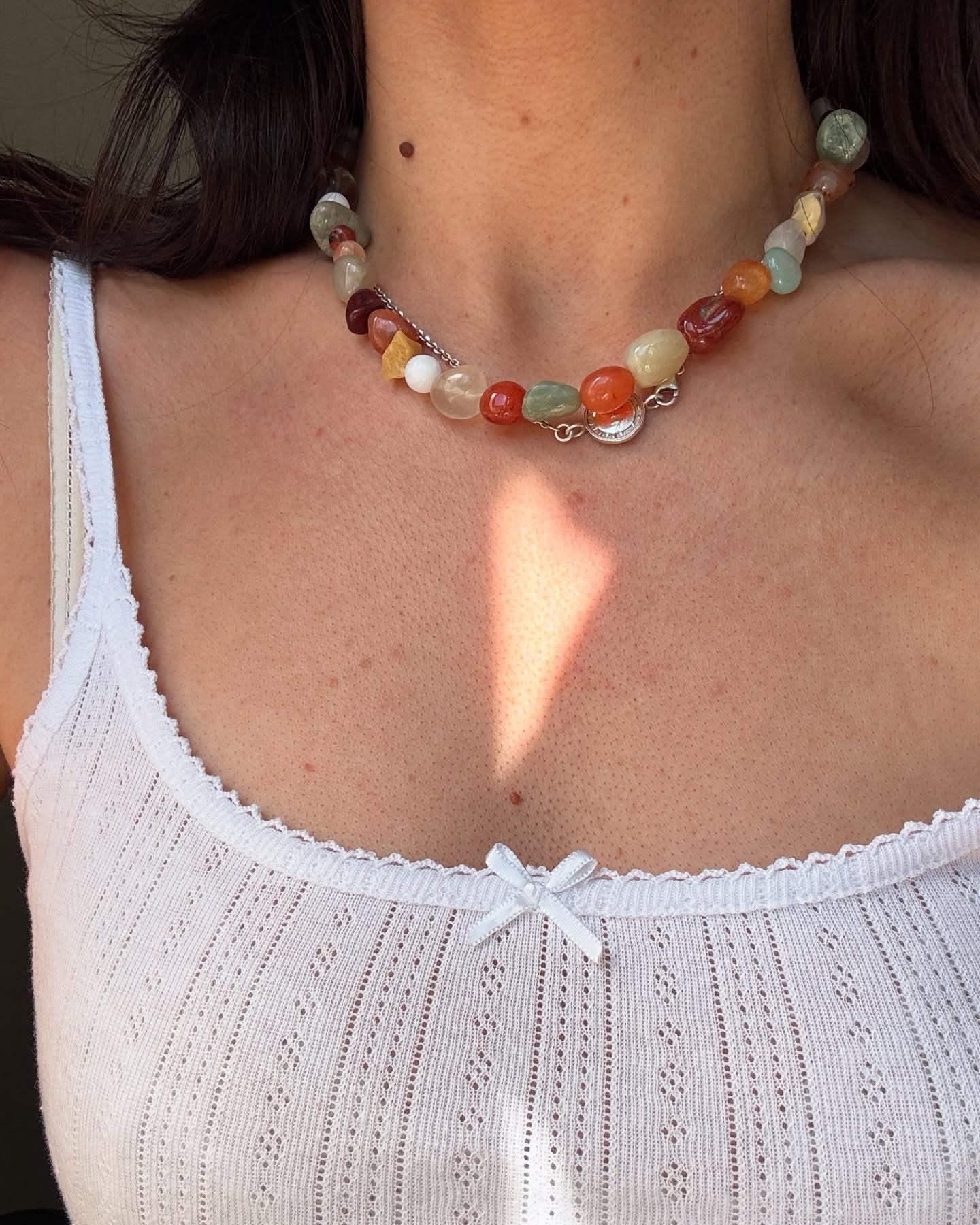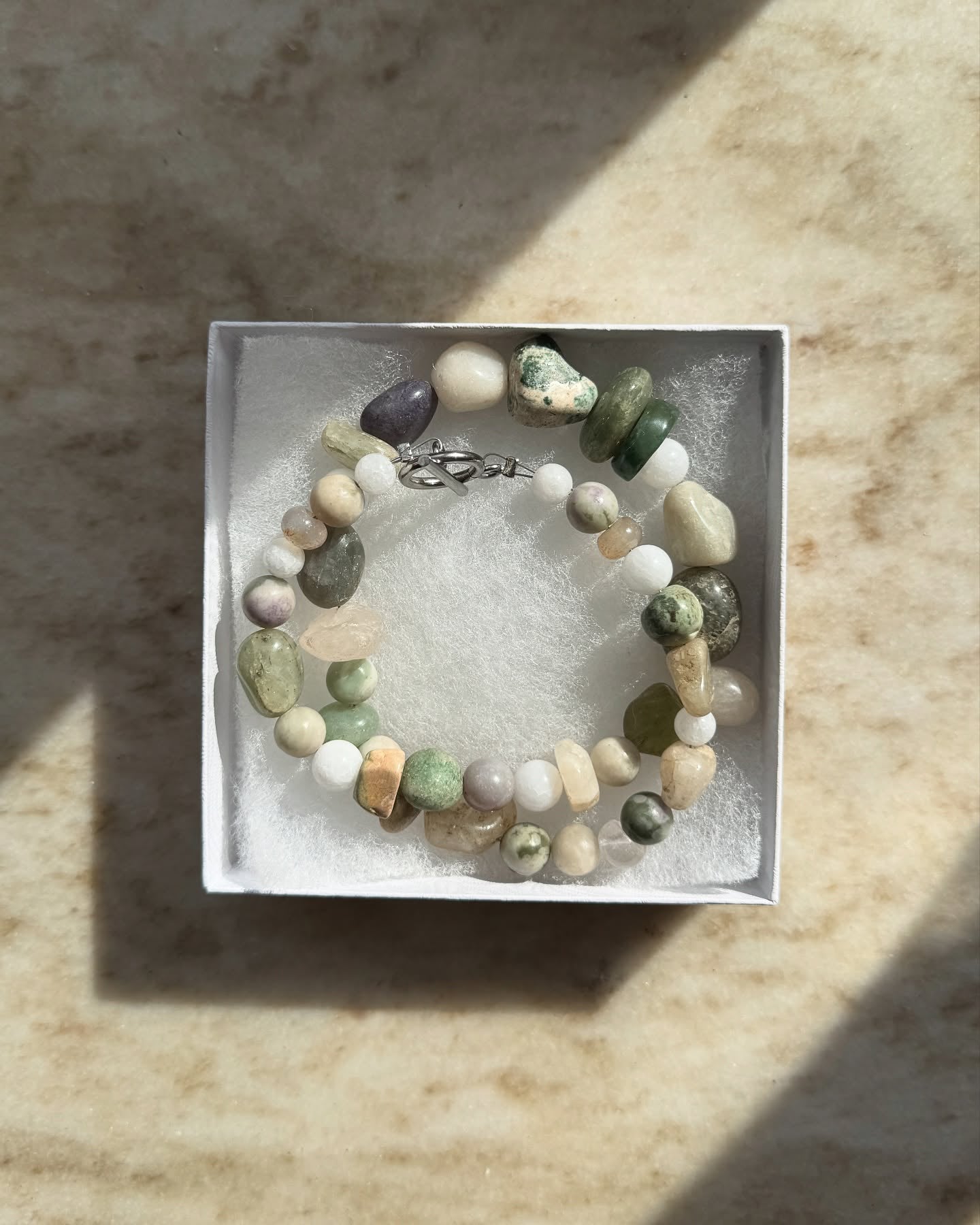 Say hi to Carolina Atelier, I create unique, colourful jewelry in semi-precious stone. I started making jewelry in 2024 as a small passion project and it has now grown into a collection of both necklaces and bracelets, all made in my little kitchen in Gothenburg.