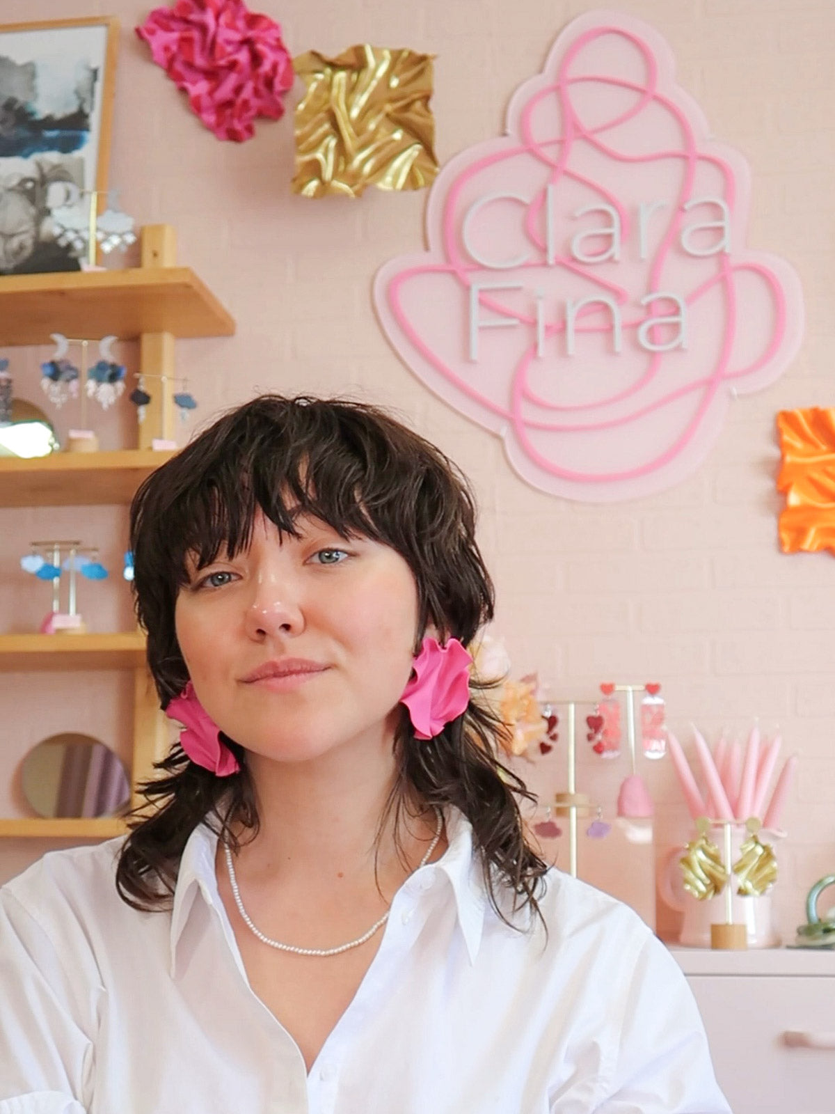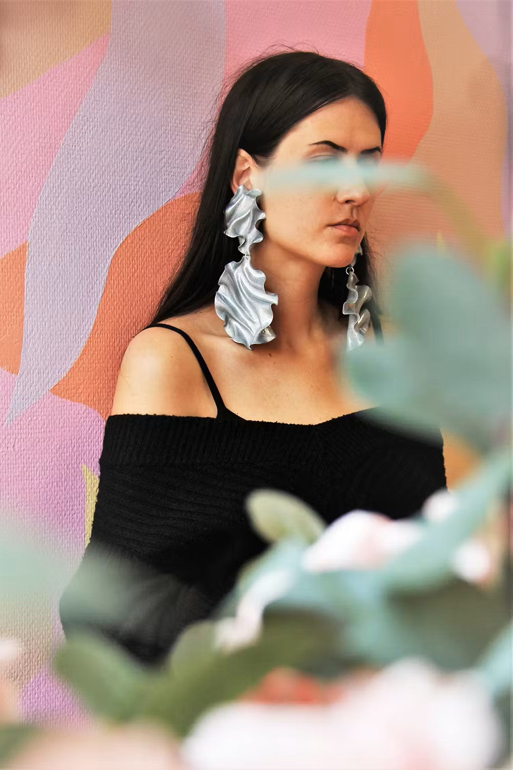 The brand Clara Fina was founded in 2019 by the Swedish Textile artist, turned jewelry designer Clara Fina Frisk. Inspired by the inherent tactility and movement within textile and nature Clara Fina creates ornamental objects for bodies and spaces. The Satin collection contains bold, lightweight statement earrings – hand-sculpted from polymer clay, inspired by luxuriously flowy satin fabrics.