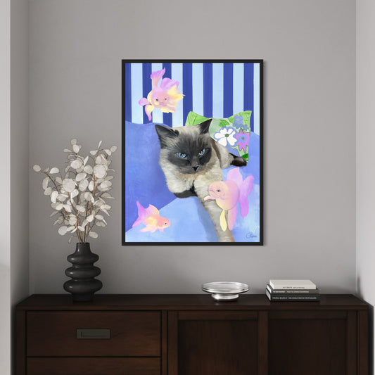 I create vibrant acrylic portraits of beloved pets, often set against striped or custom backgrounds. My work blends bold color with thoughtful design, ensuring each piece feels personal and enhances the space it lives in. Many originals are also available as prints to bring joy and color to more homes. Color psychology inspires me deeply. I see color as a life hack—to spark emotions, encourage presence, and help people live more fulfilling lives. My concept of “dopamine décor” is about bringing vivid beauty into real-world spaces as an antidote to digital overload. I’ve painted since childhood, holding my first vernissage at eight. After earning an engineering degree to “prove” myself, I’ve returned to art with confidence and intention. Inspired by bold women in my life, I create to uplift others and transform environments into spaces of joy, energy, and meaning.