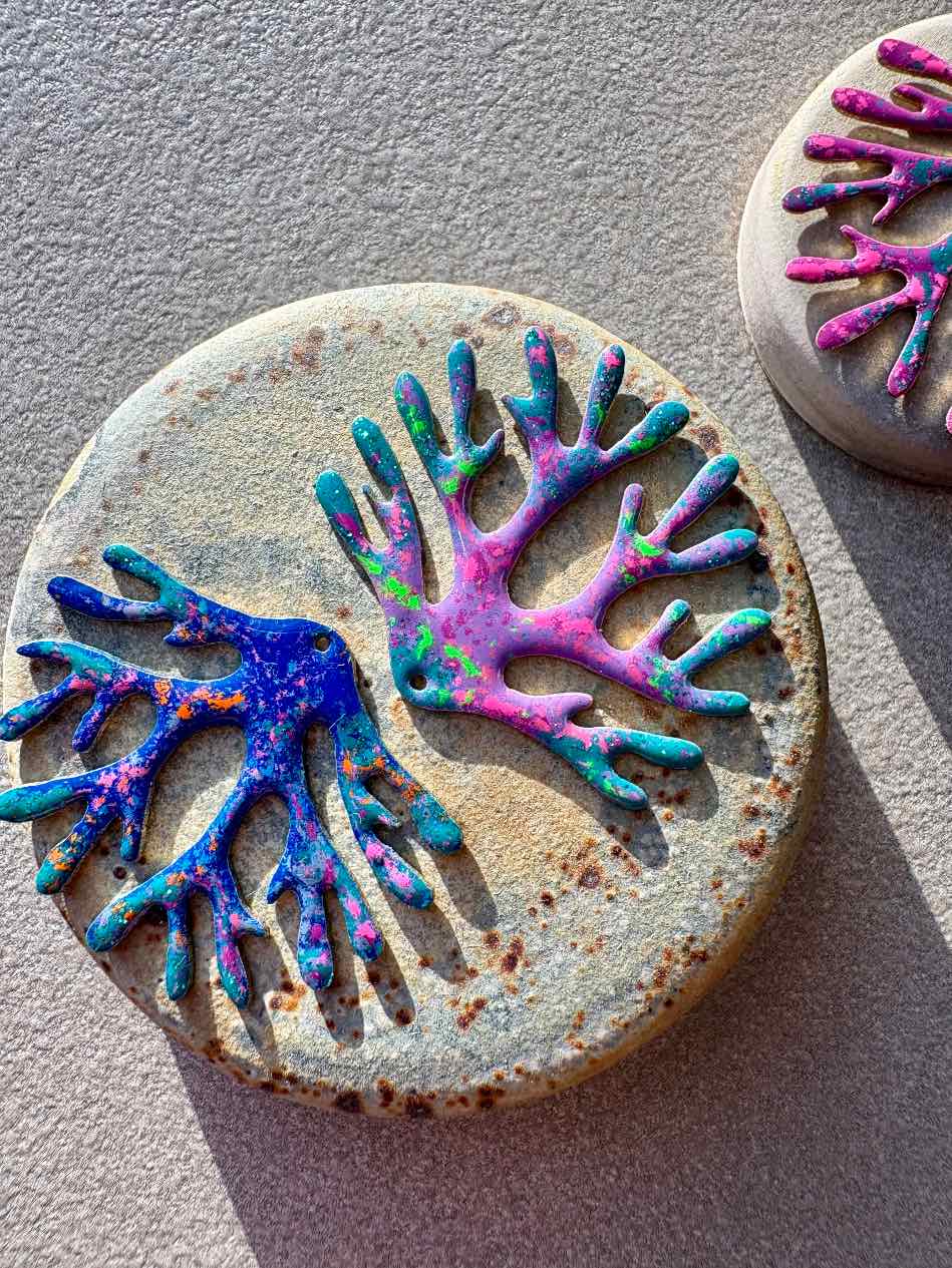 My inspiration is drawn from the ocean, organic shapes, and the colorful beauty found in natural textures. Every design begins with a sketch and comes to life through careful saw piercing, enameling, and finishing — a process that celebrates craftsmanship and individuality.
