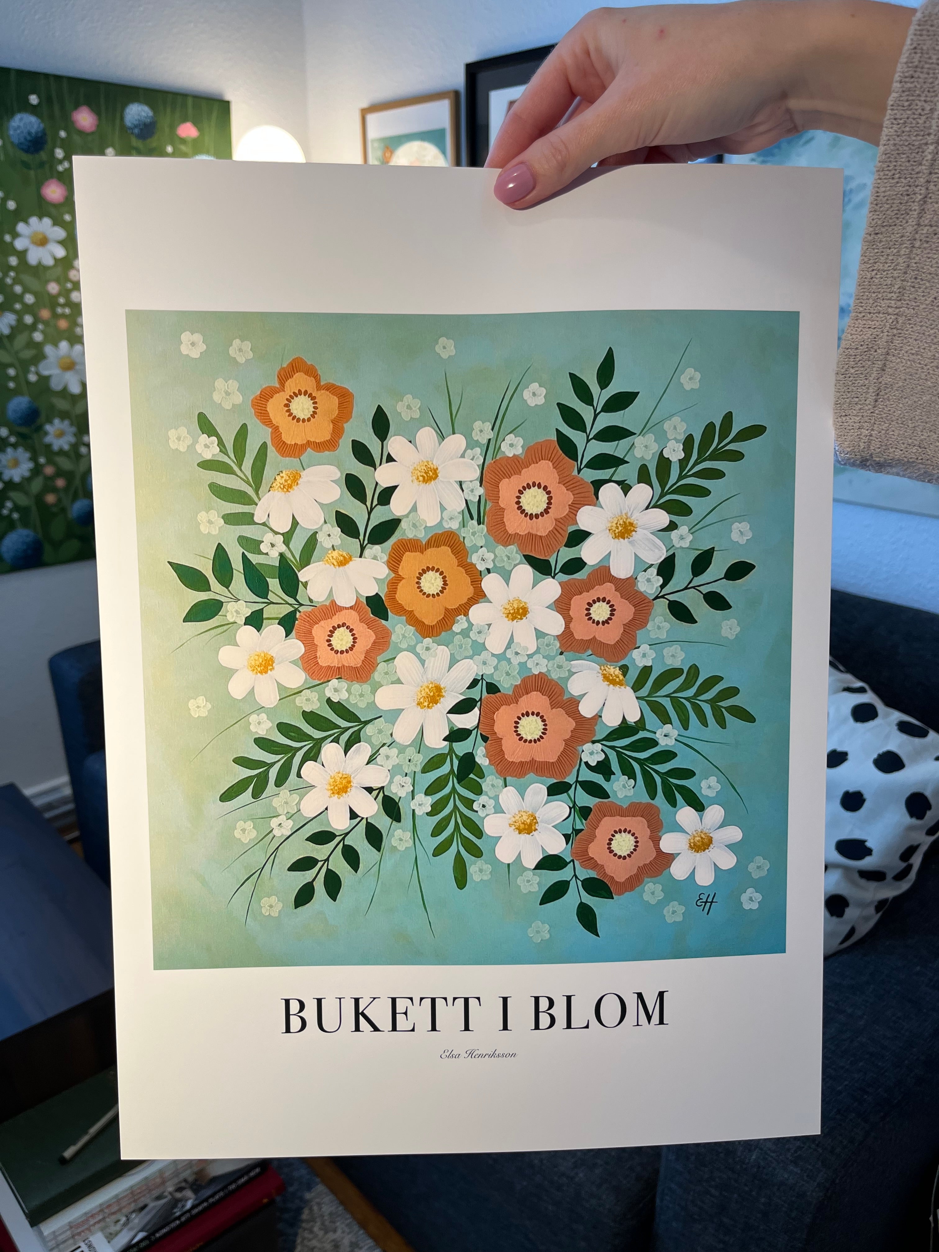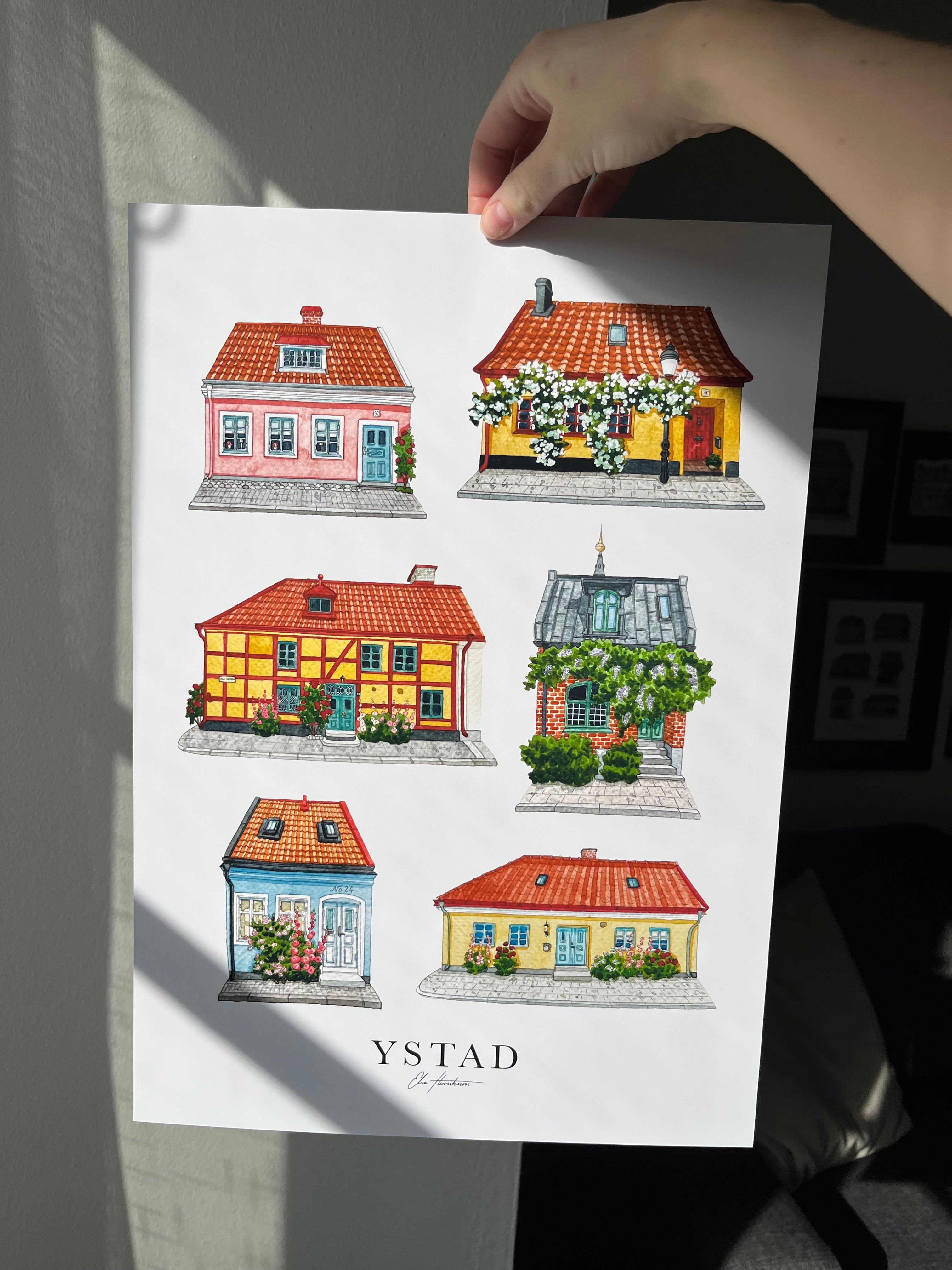 Min största inspiration när jag målar är blommor och hus. Två väldigt olika motiv, fast som ändå fungerar så bra tillsammans. När jag målar hus har jag fullt fokus och ett starkt öga för detaljer. Jag älskar att se hur linjer och penseldrag sakta bygger upp ett hus på pappret. För mig är detaljerna på huset viktigt och de bidrar till att fånga hela känslan av huset. När jag målar blommor däremot så har jag en mer avslappnad stil där jag låter penseln jobba mer fritt. Ibland har jag ingen plan, jag låter penseldragen visa mig vägen för hur målningen kommer se ut. Blommor ger mig så mycket glädje, både att måla och att kolla på. Så ett hem fyllt med blommor på väggarna är ett måste.