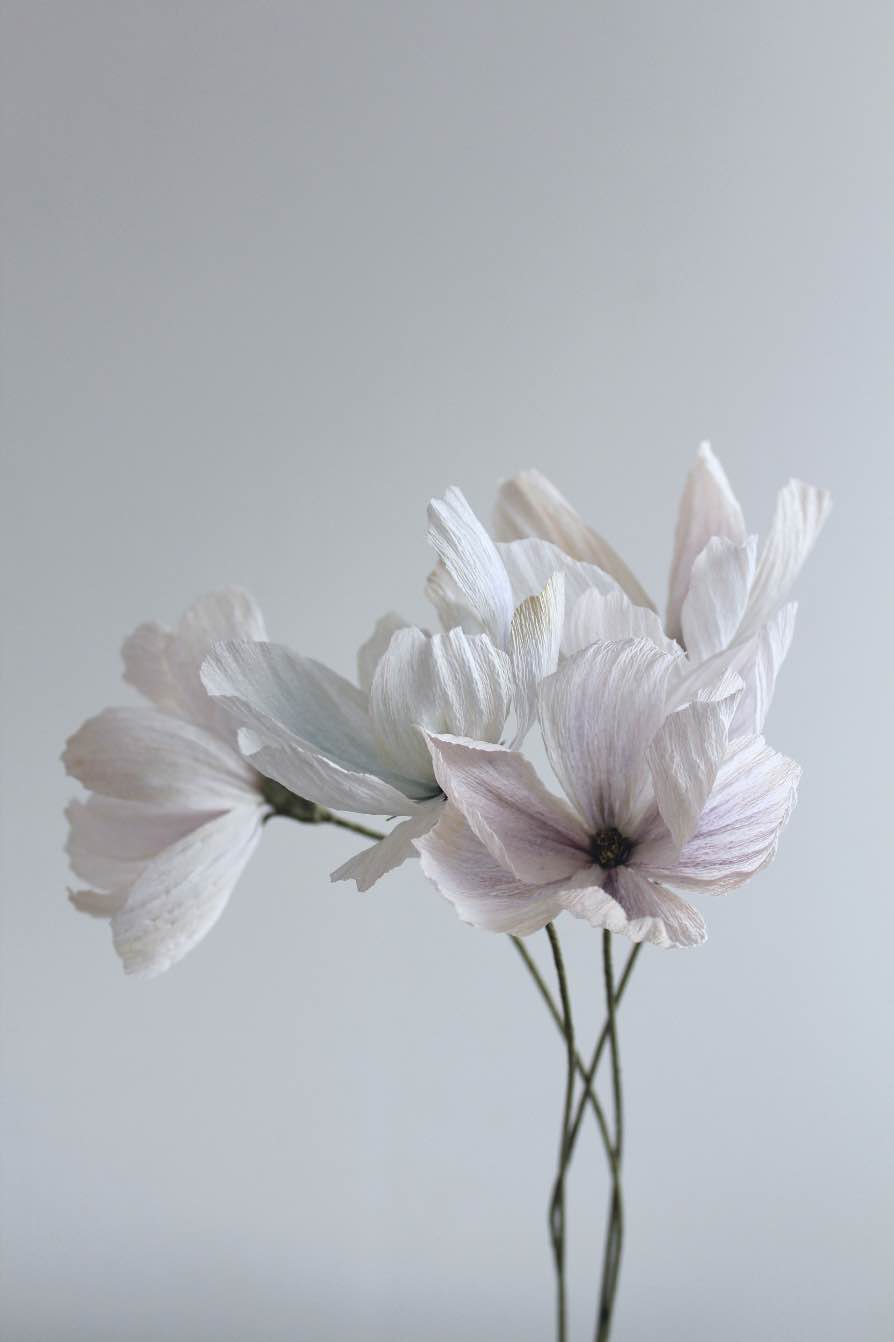 In my contemporary interpretation, I create paper flowers where each petal is hand made and tells its very own story. Sometimes I model my work off existing types of flowers, and sometimes I let my imagination take the lead and make use of the flexibility that the material gives me.