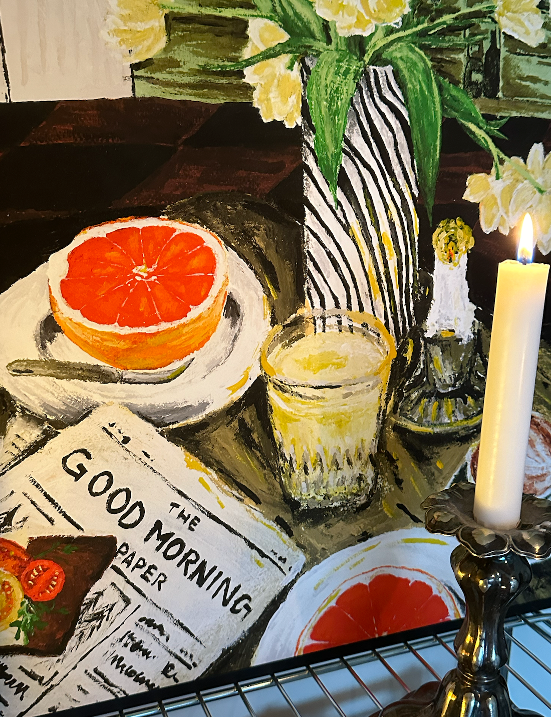 I define my art as something somewhere between realism and abstract, and I love to spend hours on small details that make the piece feel both familiar and unique. My dad once said that there’s a lot to discover in my paintings - and I love that.