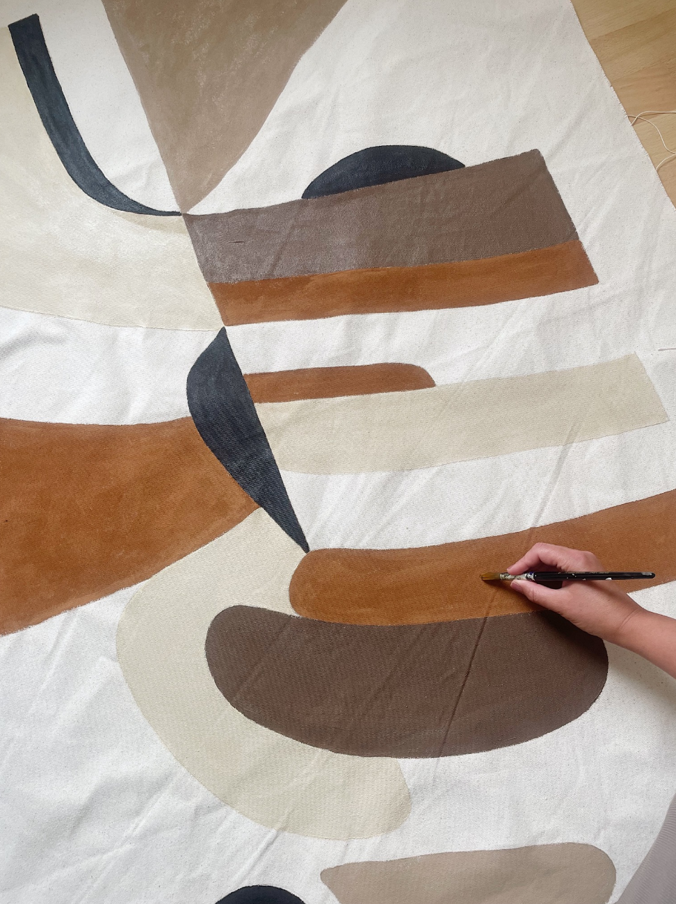 Textile art original piece - Basic shapes ochre + beige small.