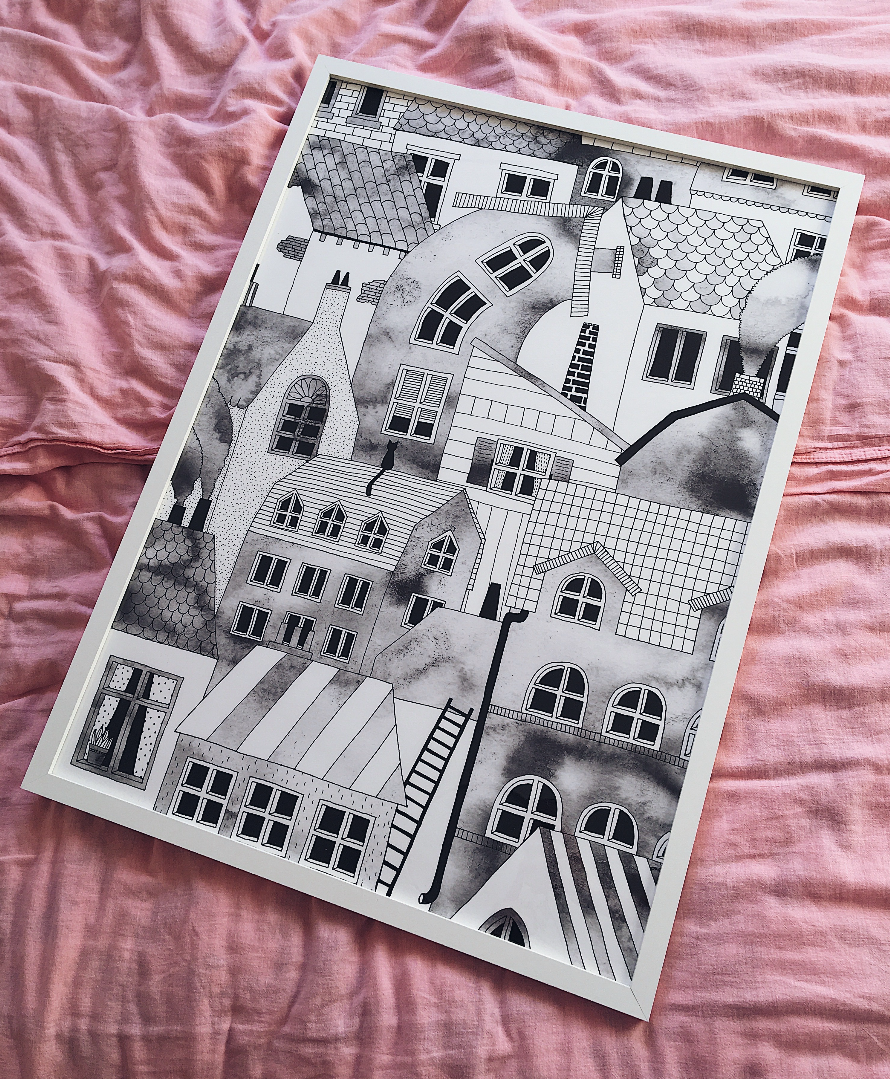Hedvig Wallin is inspired by naïve art, with its childlike simplicity in both expression and technique. Her style is playful, full of detail and skewed perspectives, aiming to spark the viewer’s imagination and reveal new details each time you look at her work. By mixing techniques such as ink, pencil, soft pastels, watercolor, and digital media, her art takes on a handmade and personal character.