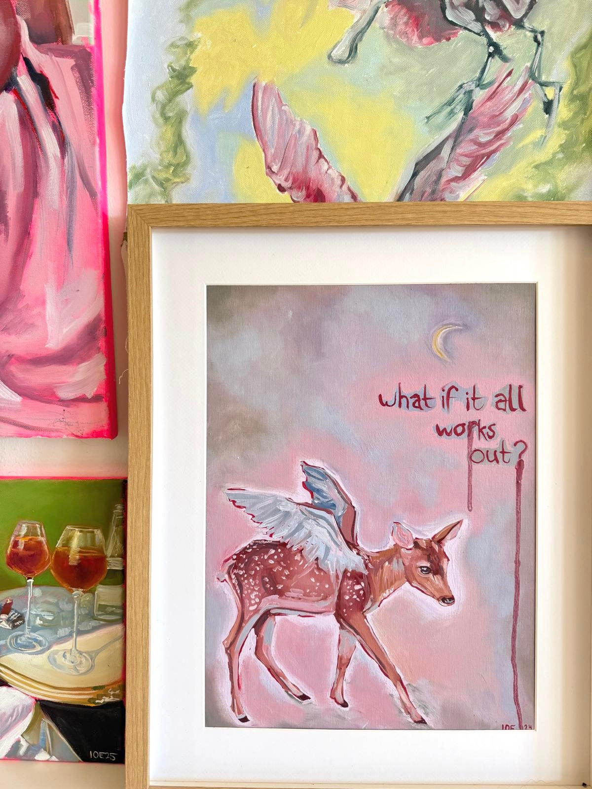 I started working with acrylics, but more recently I've fallen in love with oil paints and the depth and softness you can achieve with them. I'm still in an experimental phase, trying out different styles, techniques and ideas. Even though I'm still navigating my personal style, I've noticed a theme of femininity and bold, vibrant colors that always seems to find its way back into my paintings.