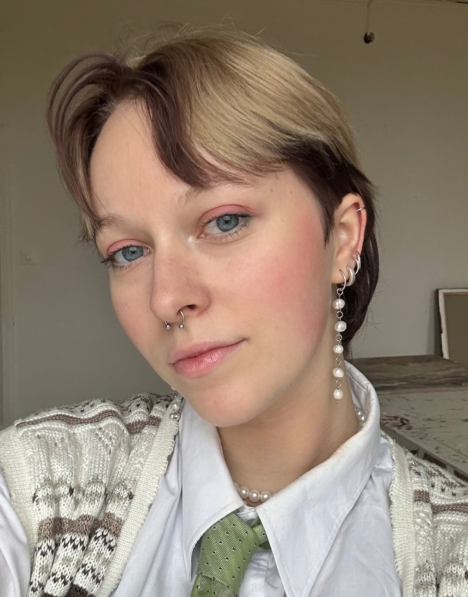 When painting, I use oil paint for the slow and methodical painterly processes, while acrylic paint diluted with water captures fluid movement through its quick drying time. Painting becomes a way to eternalize fleeting moments like movement and intuition. When I paint, I enter a deep state of flow and notice details. It provides a space for processing experiences and emotions.