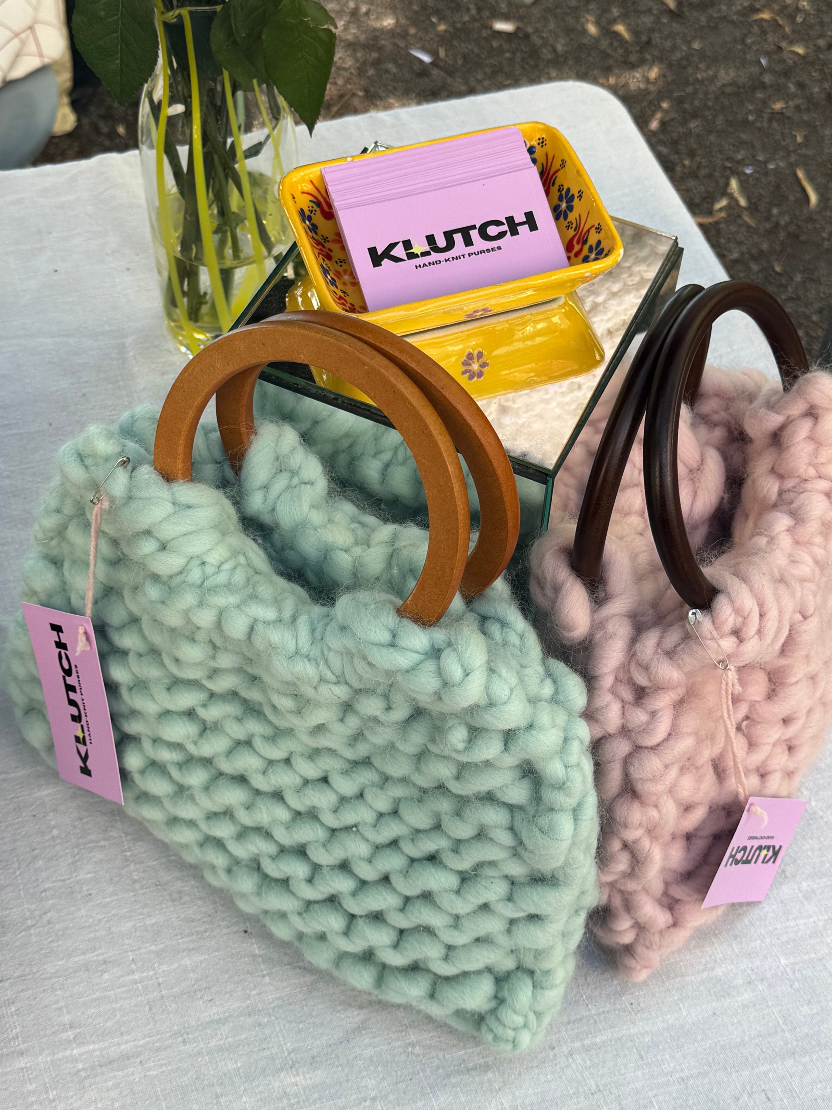 Klutch is a hand-knit purse brand founded by Viveka Sofia Cousins. Born and raised in Los Angeles and now based in Stockholm, Viveka drew inspiration for the name from the American slang “clutch” — meaning something that’s perfect in a pinch — and the classic term for a small purse. The designs fuse chunky Nordic knits with a love for one-of-a-kind accessories. Every purse is hand-knit, unique in shape and texture, and grandma-approved. That’s Klutch.