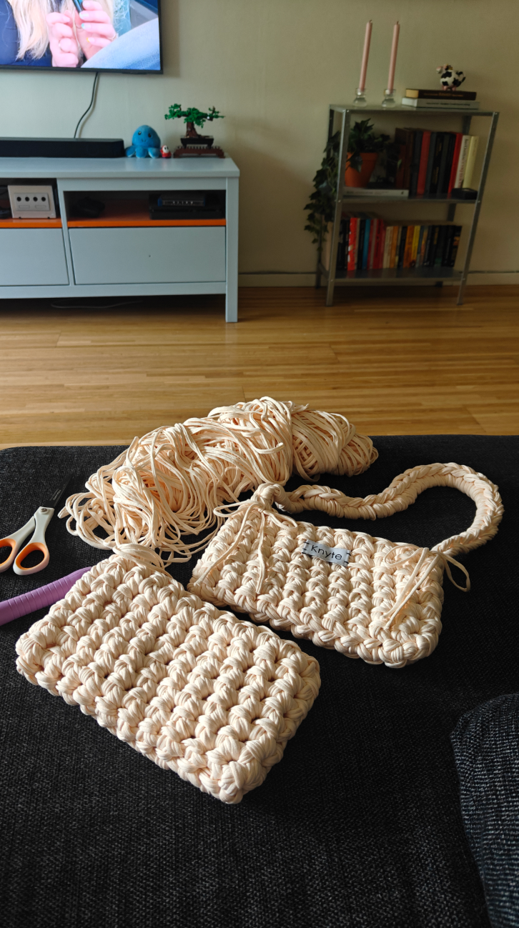 Knyte is all about embracing slow living and sustainability, while taking pride in being unique pieces of work. All of the bags are crocheted and designed by me in Stockholm. The products are made from waste materials from the textile industry - 100% recycled cotton fabric. Knyte was founded in 2023 - in the midst of my burnout. I realized that moving slow was the only way to move forward to get a better quality of life. I started experimenting with slow hobbies, and got hooked (pun intended) on crochet. Hopefully my pieces will bring you just as much joy as creating them does for me.