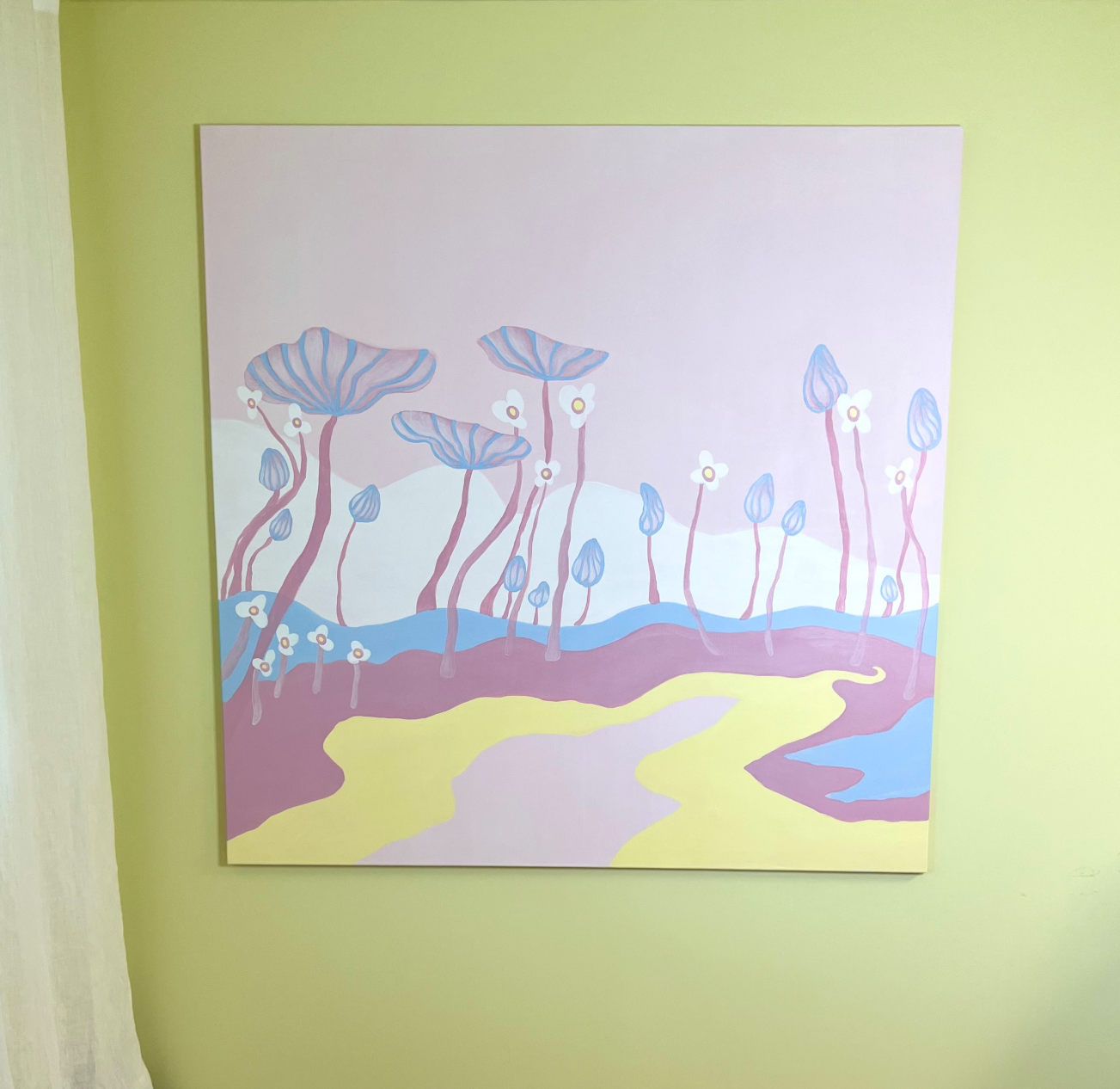 I create art that lets spaces breathe – colorful, playful pieces that bring joy, lightness and flow. My work is inspired by nature, childhood magic and the emotional power of color. I’m drawn to unexpected combinations, organic shapes and the way art can transform everyday spaces into something softer, warmer and more alive. I work with original paintings, prints and large-scale murals, and I love seeing my art bring beauty and positive energy into homes, hotels, hospitals and public spaces. Beyond painting, I’m also passionate about surface design – and I’m open to collaborations in pattern design for wallpaper, textiles and packaging. Whether on a wall or wrapped around an object, my goal is always the same: to spark joy and create space for imagination.
