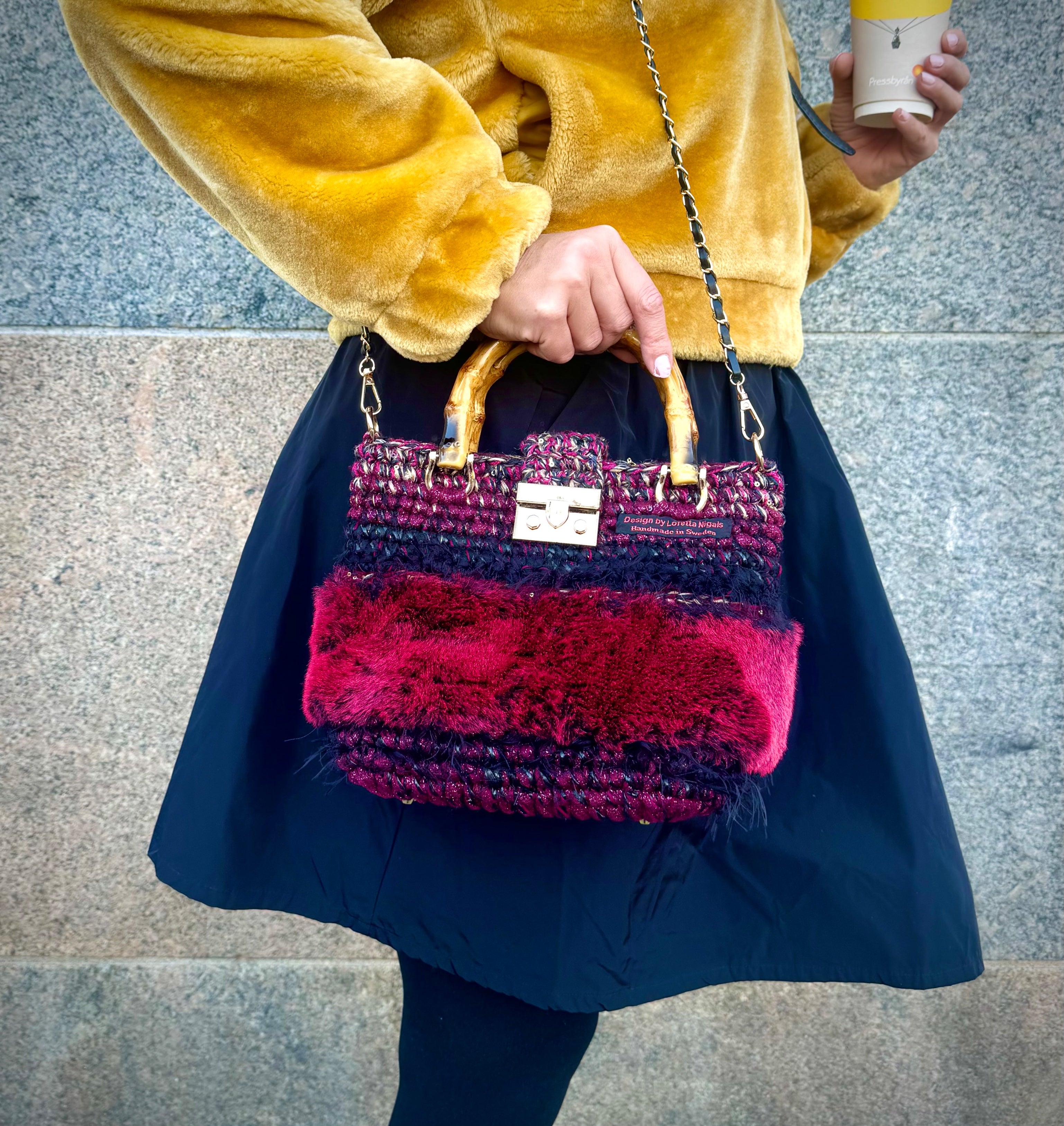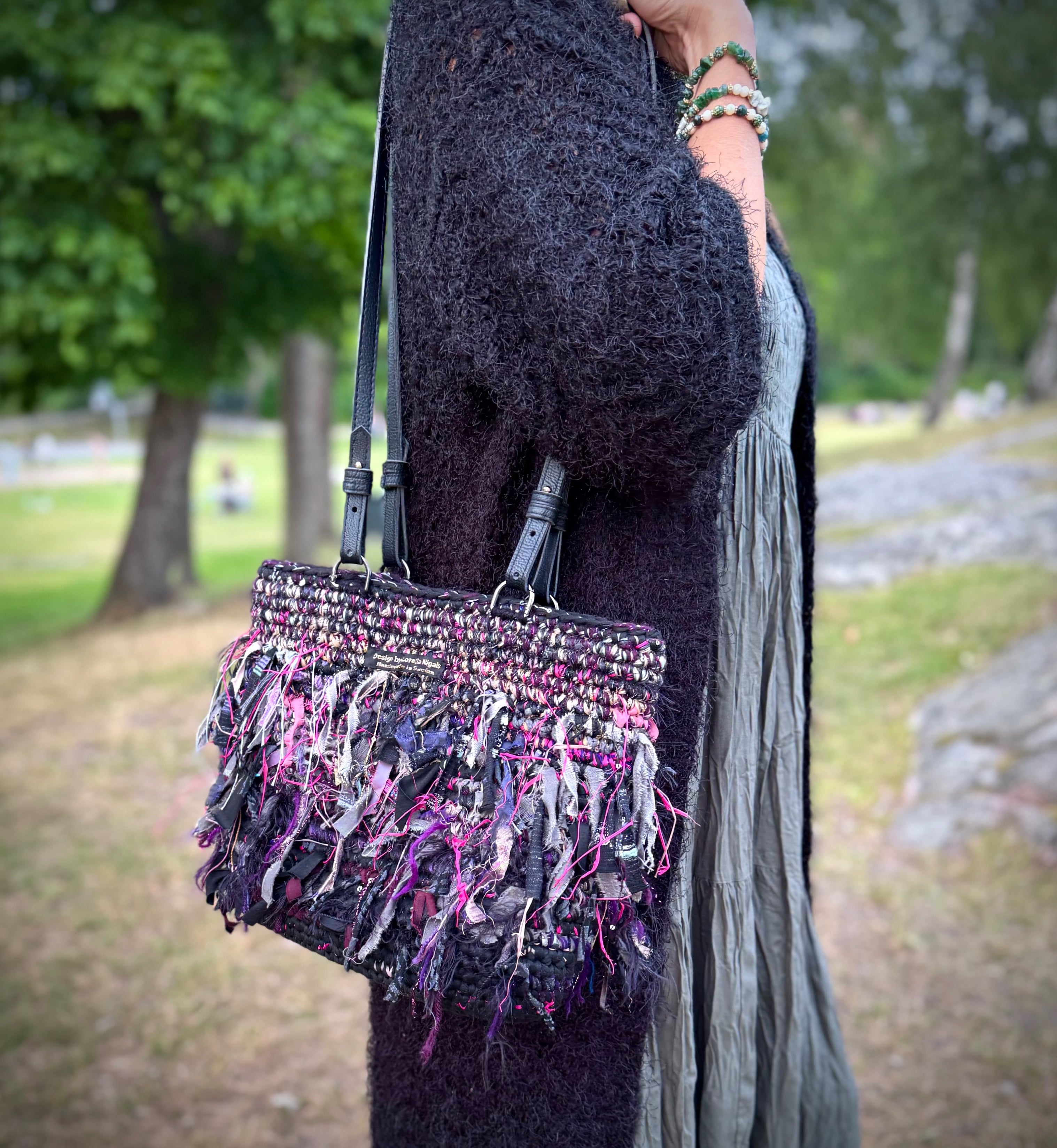 Jag skapar handvirkade väskor, stickade sjalar, kuddar och handtryckta dukar – unika hantverk där naturens färger möter modern form.