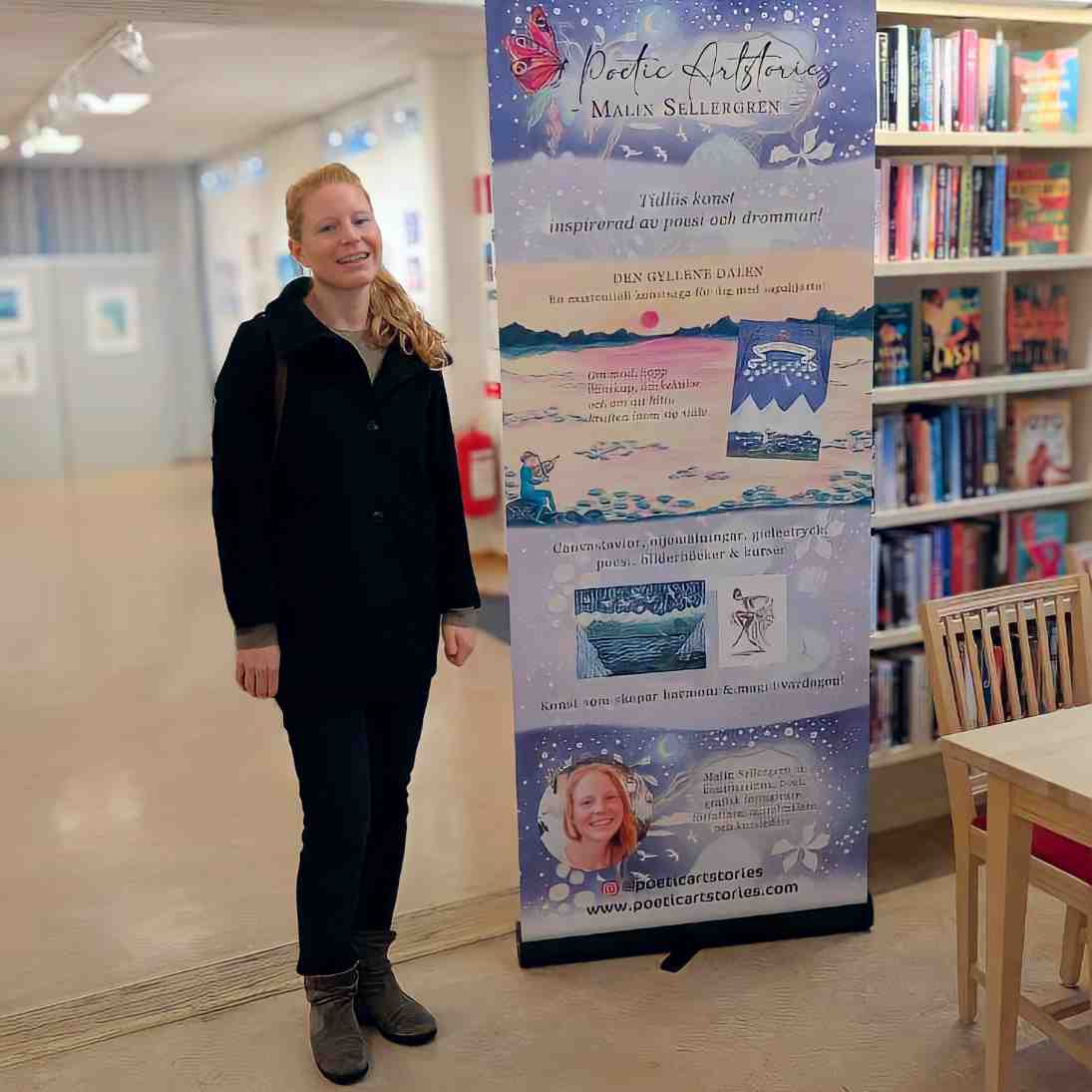 I have a YH degree in decorative painting/mural painting from Hantverksakademin and have studied graphic design, illustration and creative writing at Konstfack and Stockholm University, among others. In parallel, I have exhibited, freelanced as an illustrator, led painting courses and created poetry collections and the art saga The Golden Valley.