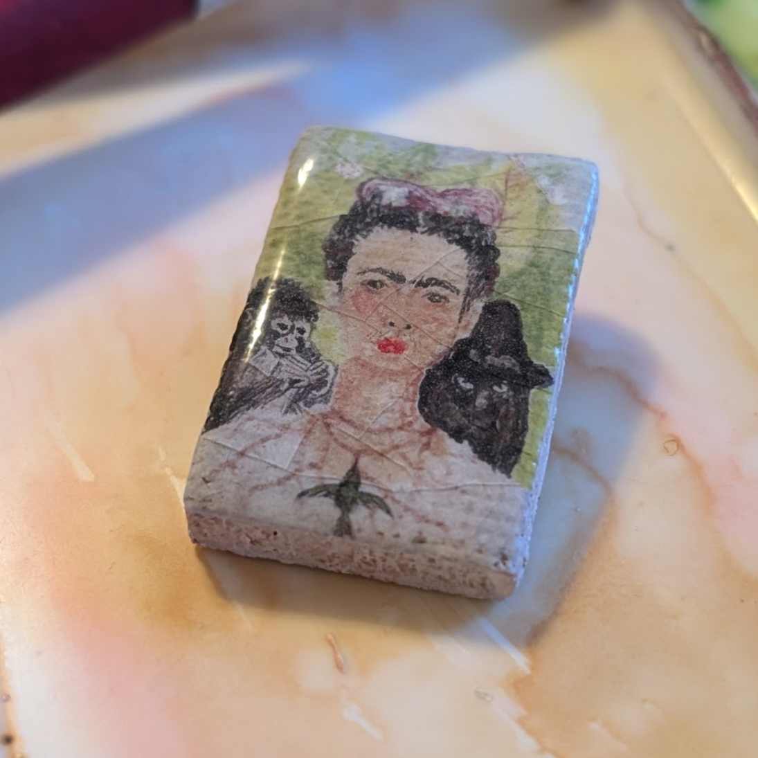 Autorretrato con collar de espinas y colibrí - Ceramic necklace Charm Pendant