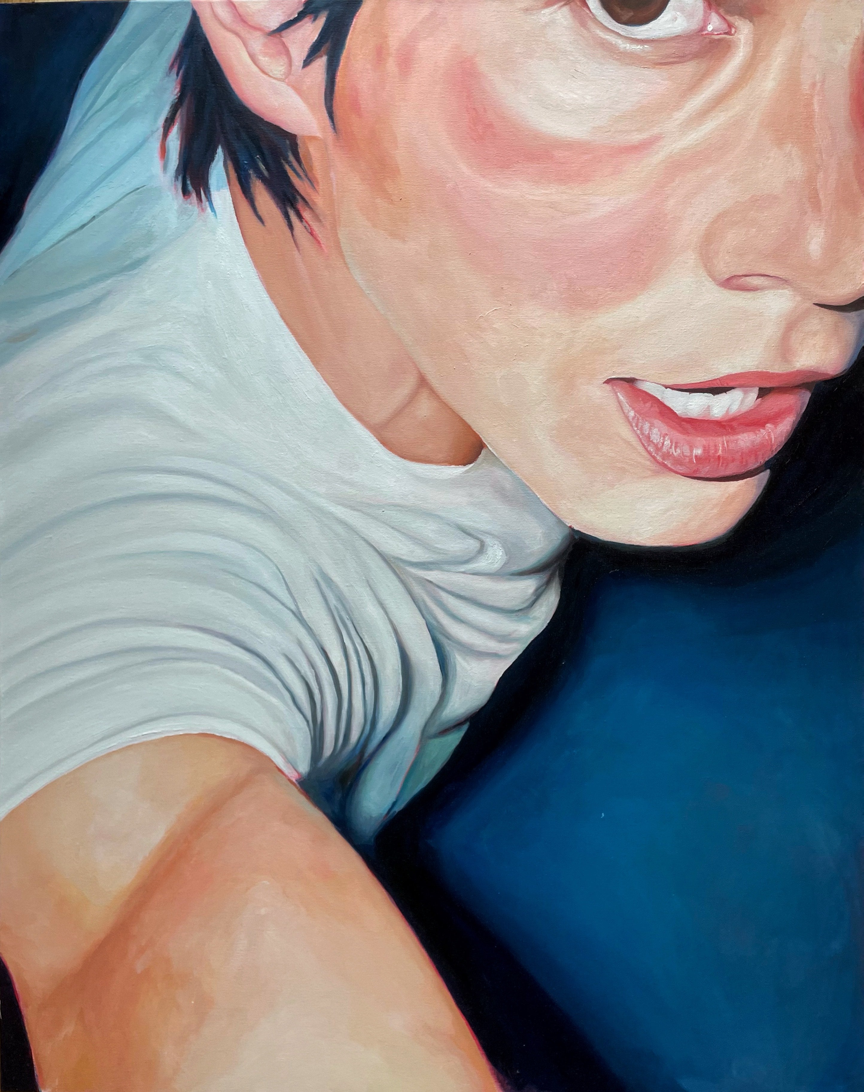 A lot of my inspiration comes from flash photography and moments of emotional intensity. I use oil paint to explore vulnerability, intimacy and the strange beauty of being seen.