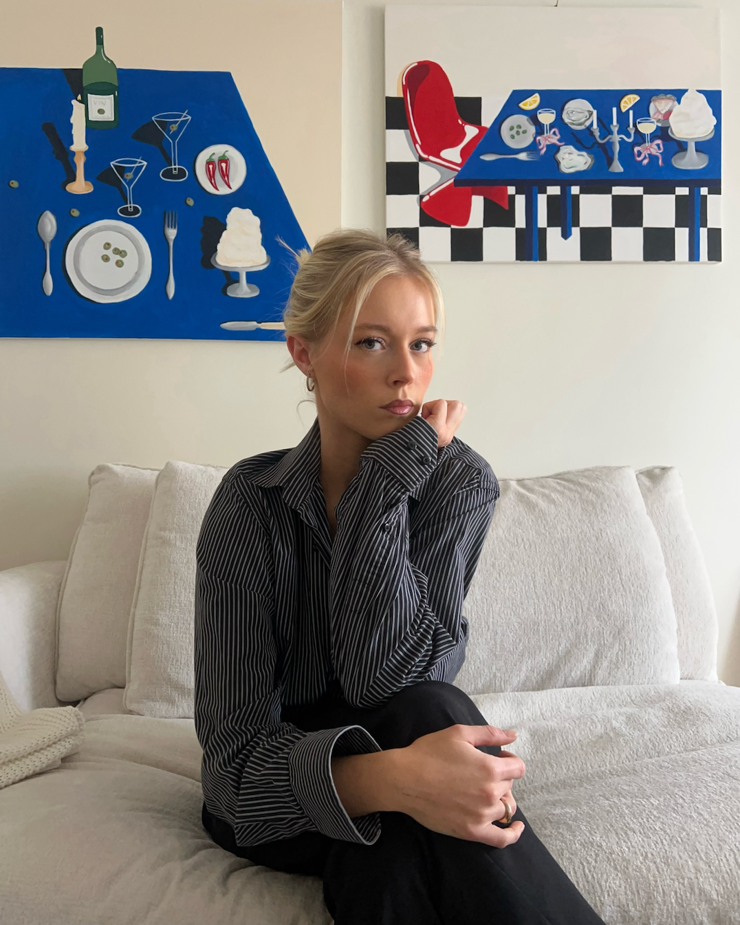 I first picked up the paintbrush when I moved to L.A to study. It was a productive, but yet relaxing thing to do between exams. My inspiration comes from a lot of things, mostly from my surroundings, everyday life, but also from my time abroad. I love to combine different types of dimensions since I believe that it brings a sort of comfort and charm. I hope that my art can comfort and charm you too.