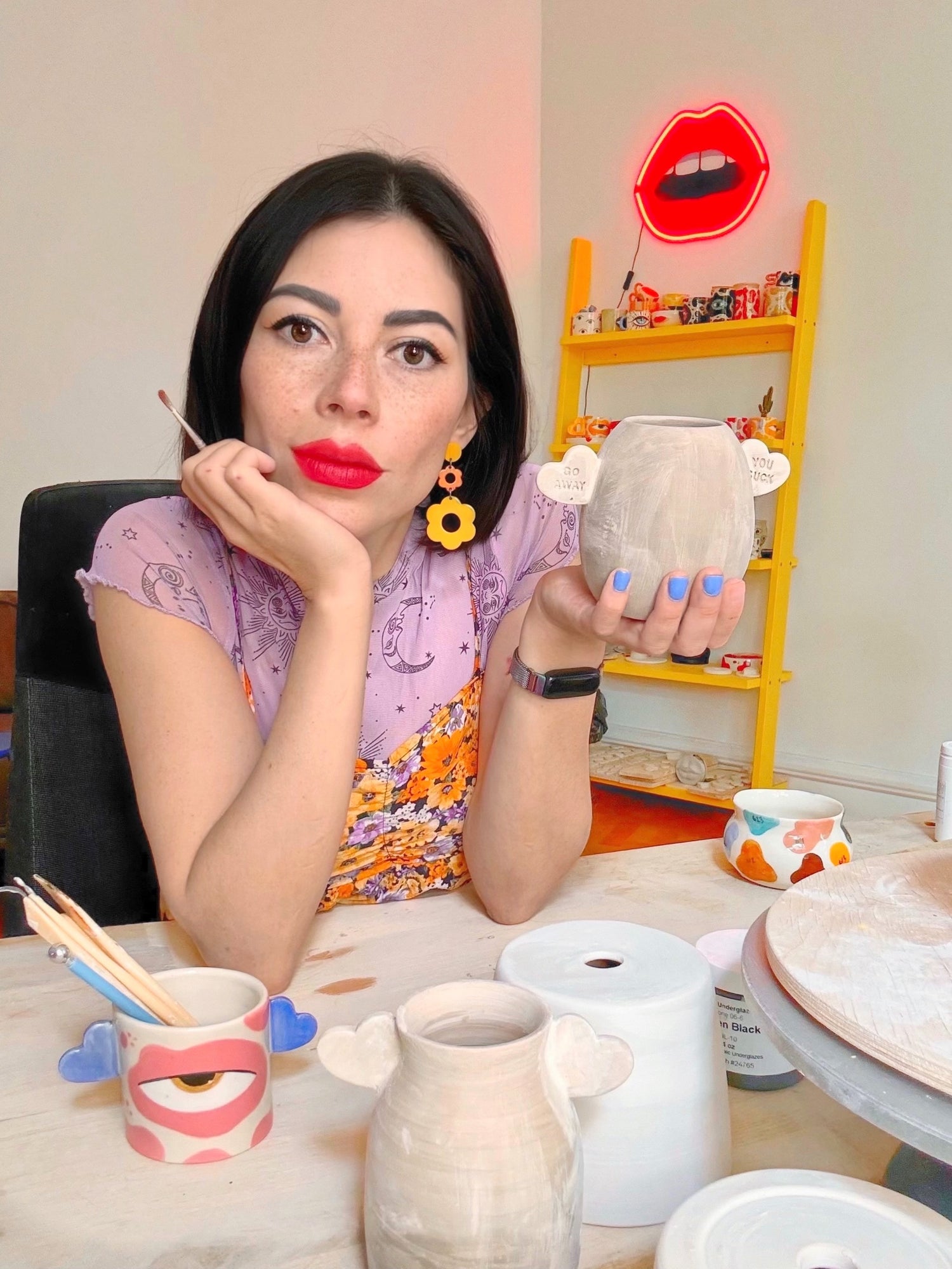 Hi, I’m Liz Velazquez—a graphic designer by day and ceramic artist by night, with a passion for all things wonderfully odd. Originally from Toronto and raised in Mexico City, I now call Malmö home. I launched @mud.freak as a creative playground—a space where I can experiment freely, without rules. I draw inspiration from the bold colours and electric energy of my Mexican roots, working with stoneware clay to create homewares and jewellery that are bold, playful, and full of personality.