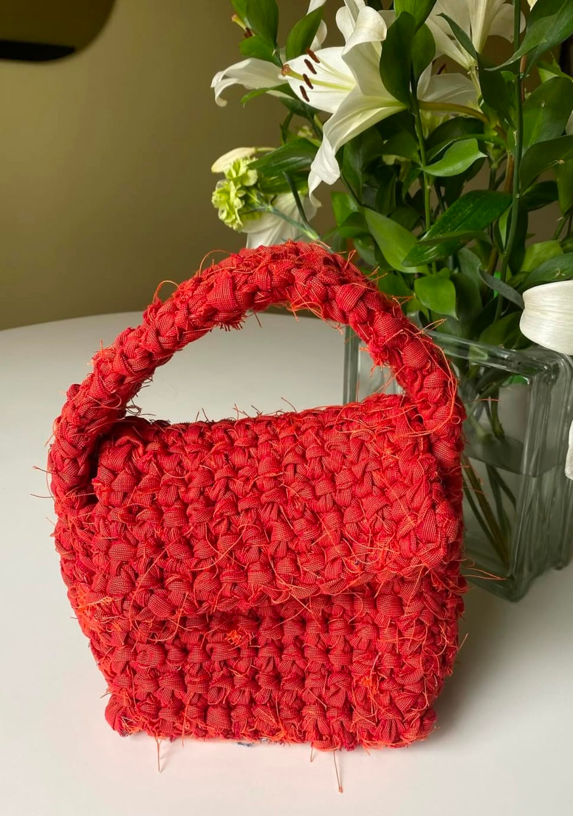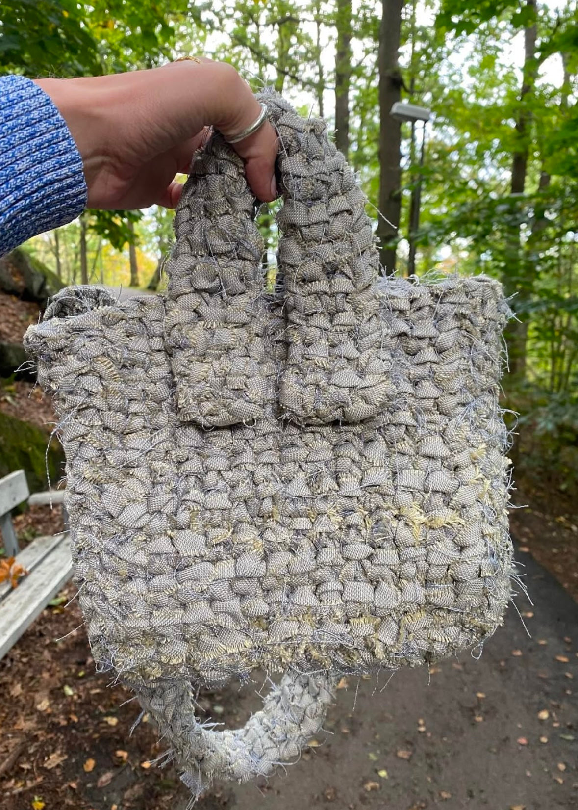 Hello! My name is Olivia and I create crocheted handbags made from upcycled deadstock fabric under the name "re.rut". With my friends as inspiration, the different models got their names from hanna, saga and becky and all have their own personalities. Each bag is unique and is made from leftover fabric – either from dad's old jeans, a rug that never got rid of or the seamstress' leftovers.