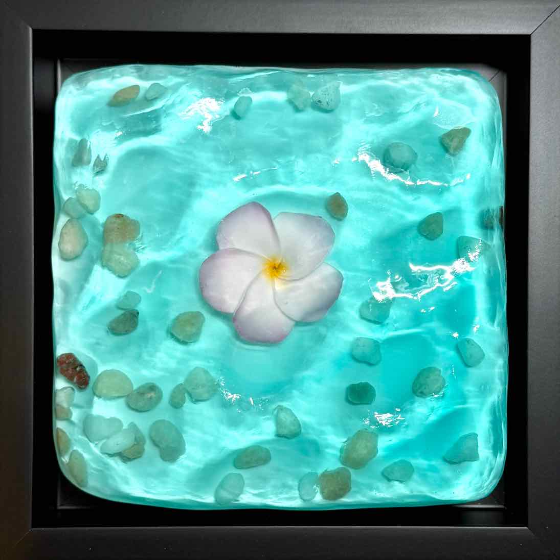 I love creating resin water and I experiment a lot with different styles and different types of objects on and under the water. I have many ideas for flowers on the surface of the water and also beneath the surface.