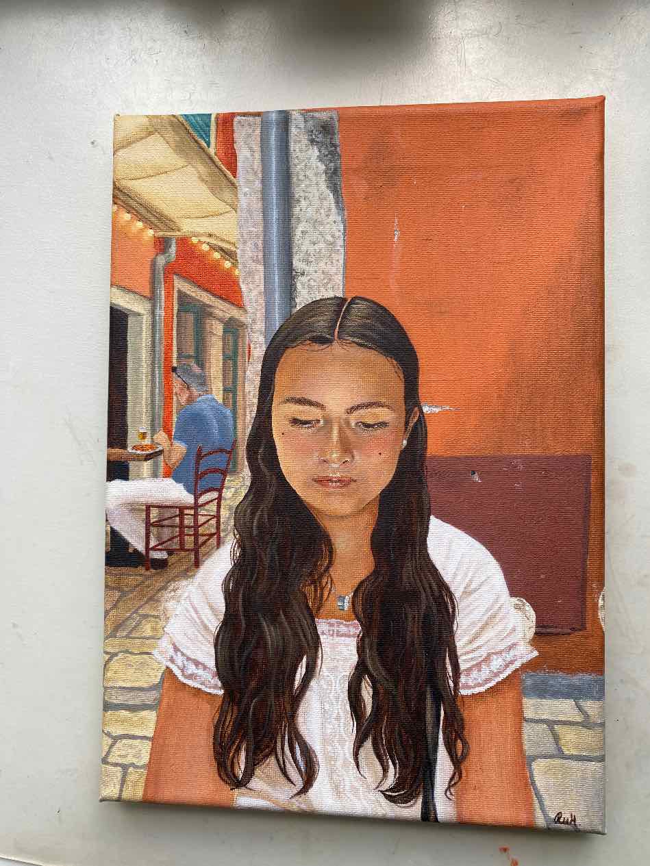 I am an artist inspired by the calm in social settings and presence of nature. In my paintings, I explore social settings using acrylics, working in a watercolor-like style where I build the image layer by layer to create depth, softness, and emotion.