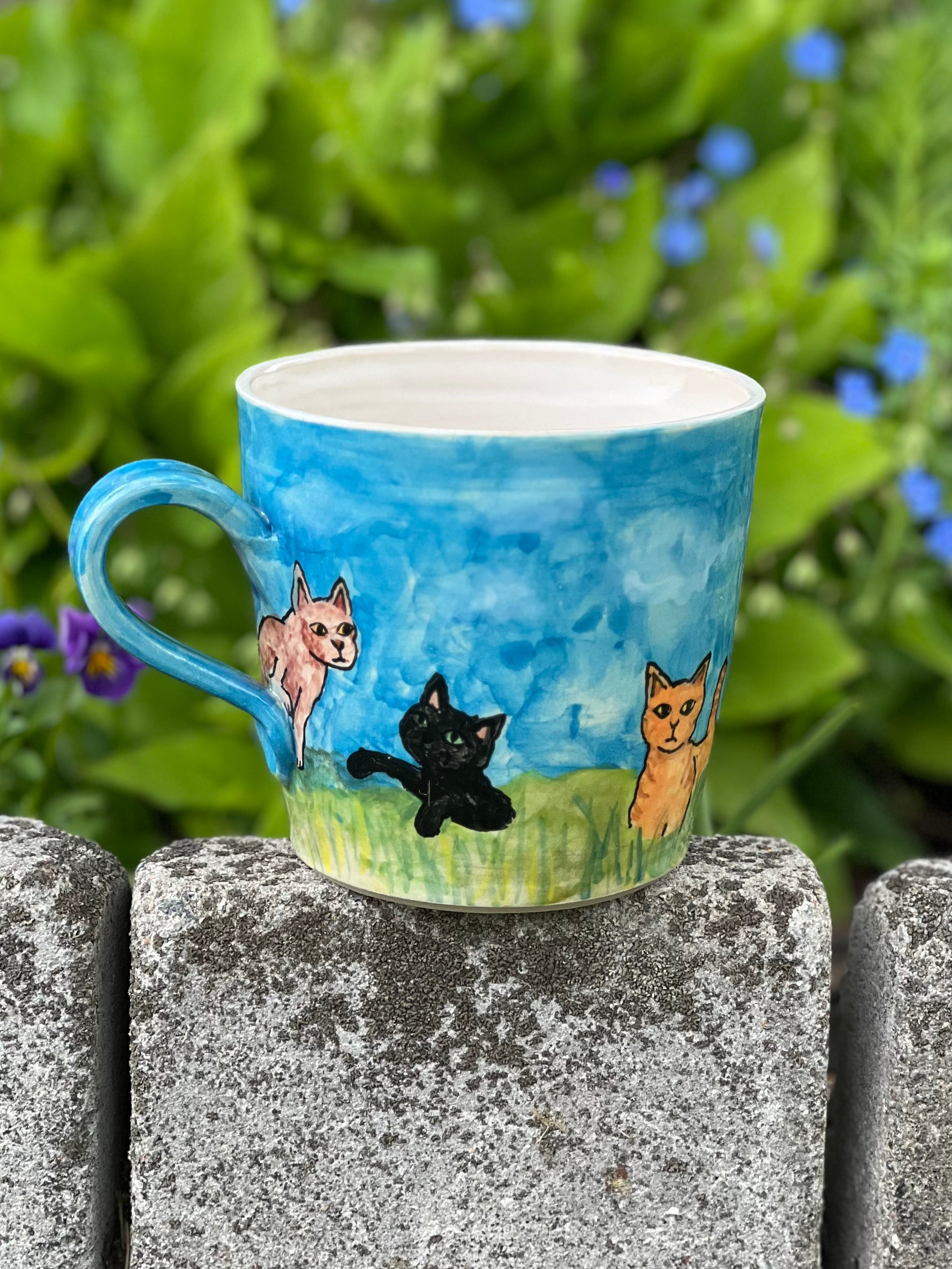 Handmade stoneware catmug