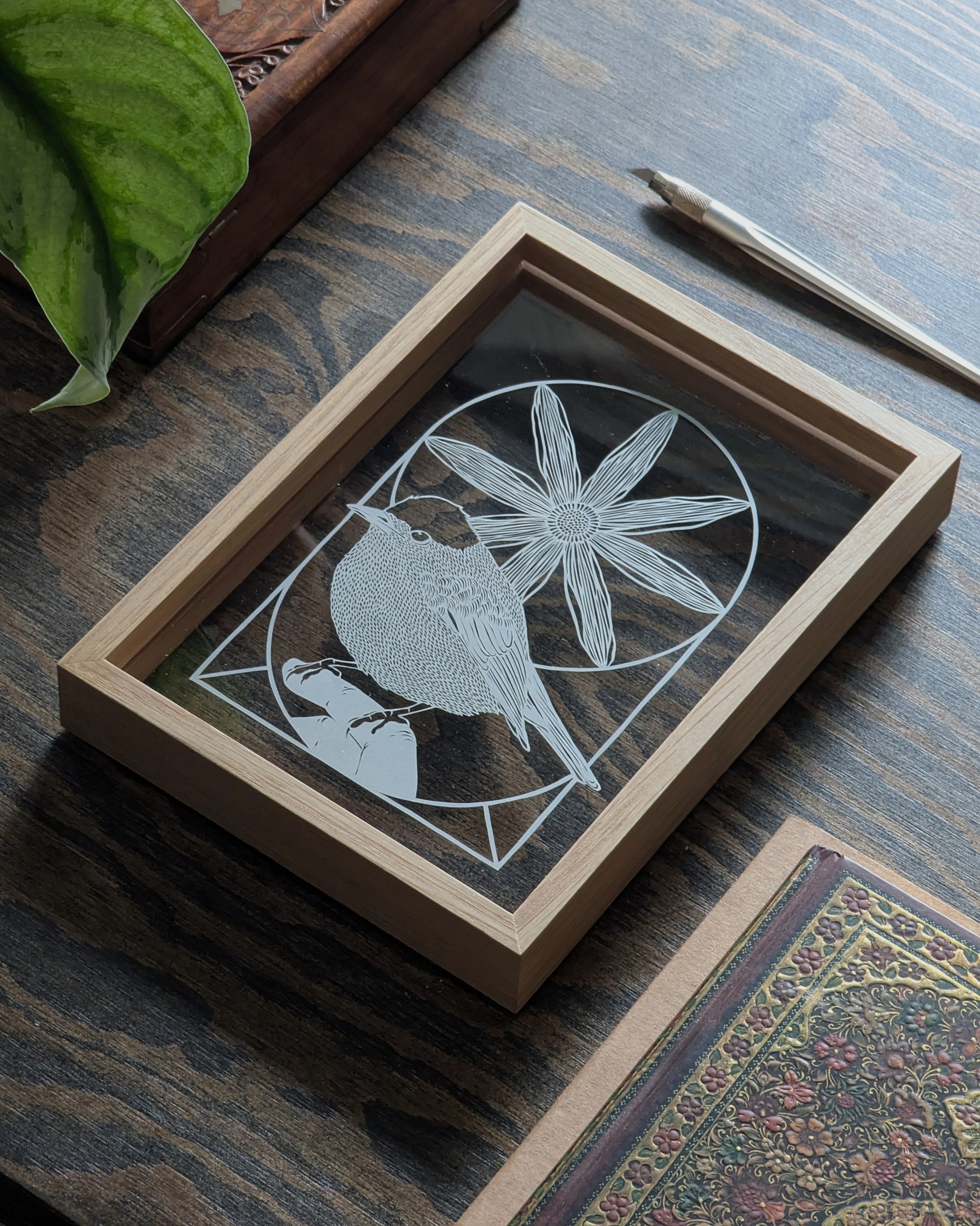 The inspiration for my work comes from textures found in nature. Think birds, bugs, wings, scales and petals. Through paper-cutting, I reimagine a single sheet of paper into intricate compositions and sometimes these artworks find their way into the notebooks I stitch by hand.