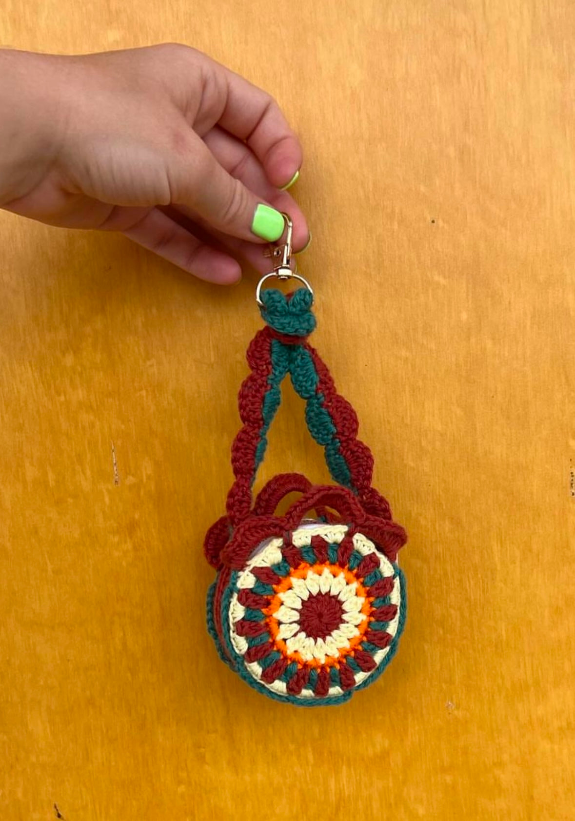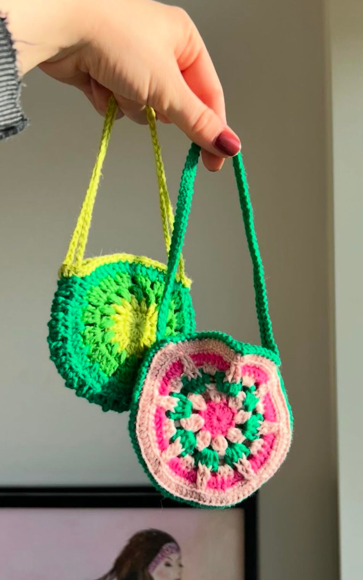 Today, Emelie is best known for her playful and vibrant snuff bags. Characterized by bold color combinations, unexpected patterns, and whimsical garlands, these small round bags have captured the attention of millions on TikTok under her handle, @slemcrochet. Each bag is one of a kind, reflecting a balance of traditional craftsmanship and the dexterity honed through years of practice. With hundreds of bags already crocheted, Emelie continues to turn a timeless craft into a joyful, modern expression of art.