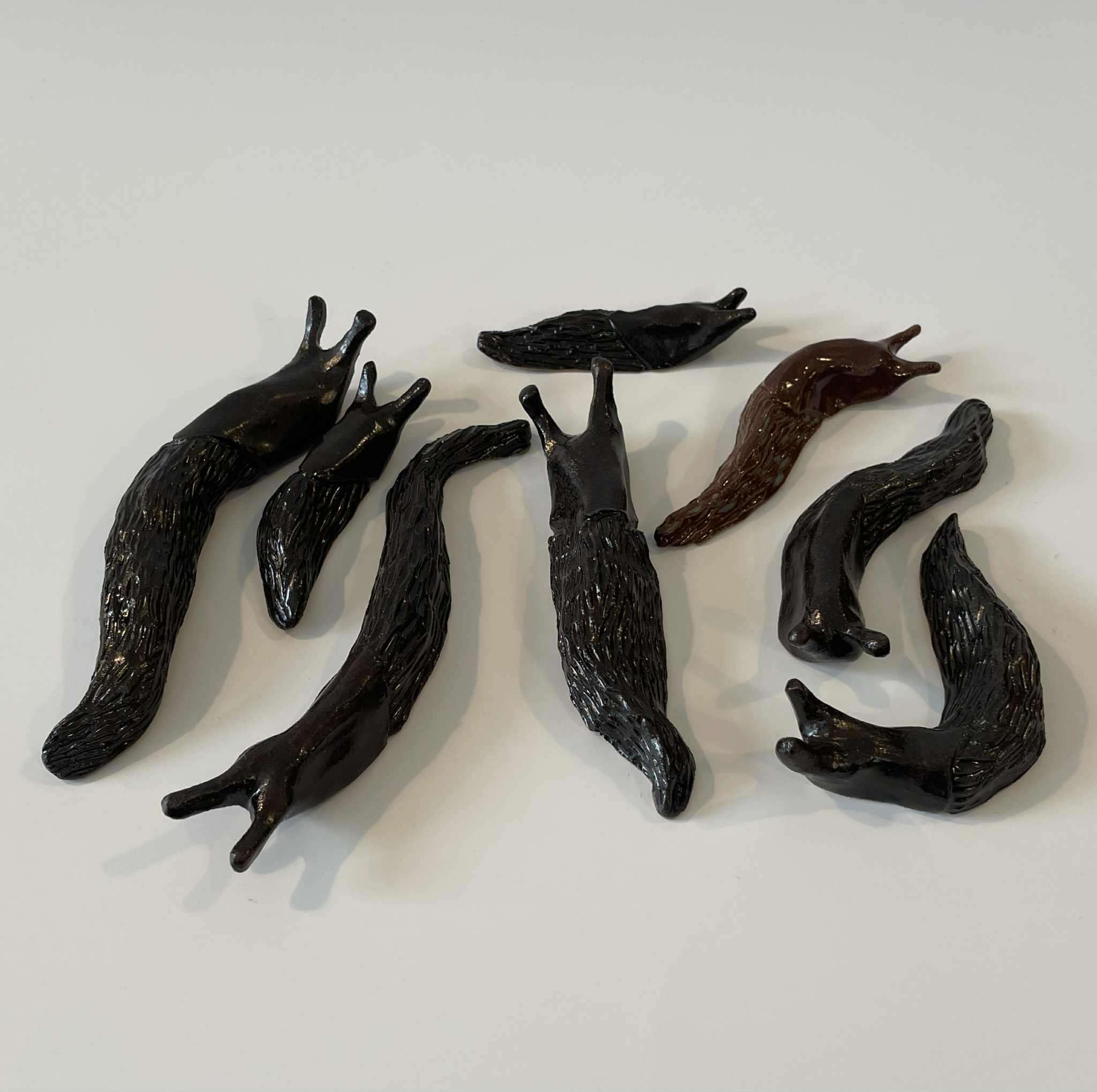 My snails are an ongoing project that I would like to exhibit one day. I like the way they look in groups, like a rainy day in the garden.
