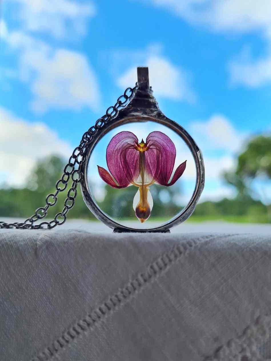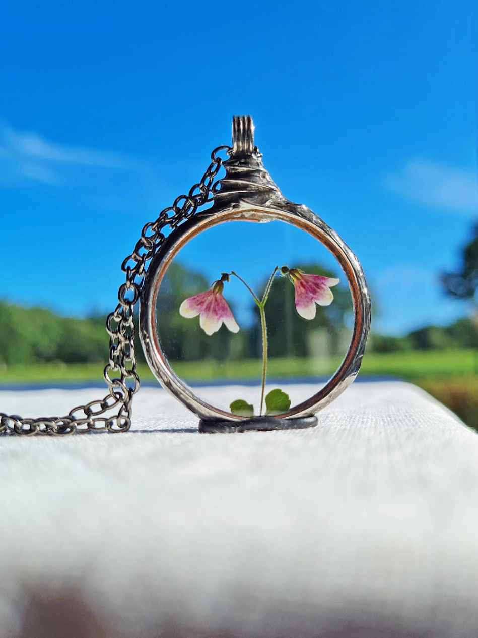 Twinflower Linnea Terrarium Necklace - real pressed flower