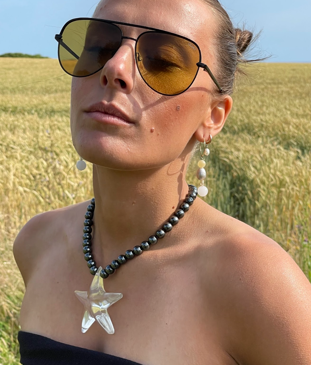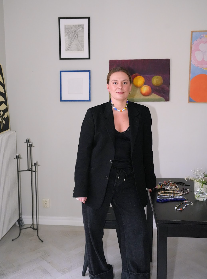 All jewelry is handmade by me, Lovisa, in Stockholm. No piece is ever exactly the same—each one has its own unique character and feeling. It brings me so much joy when others choose to wear my creations and make them a part of their own story.