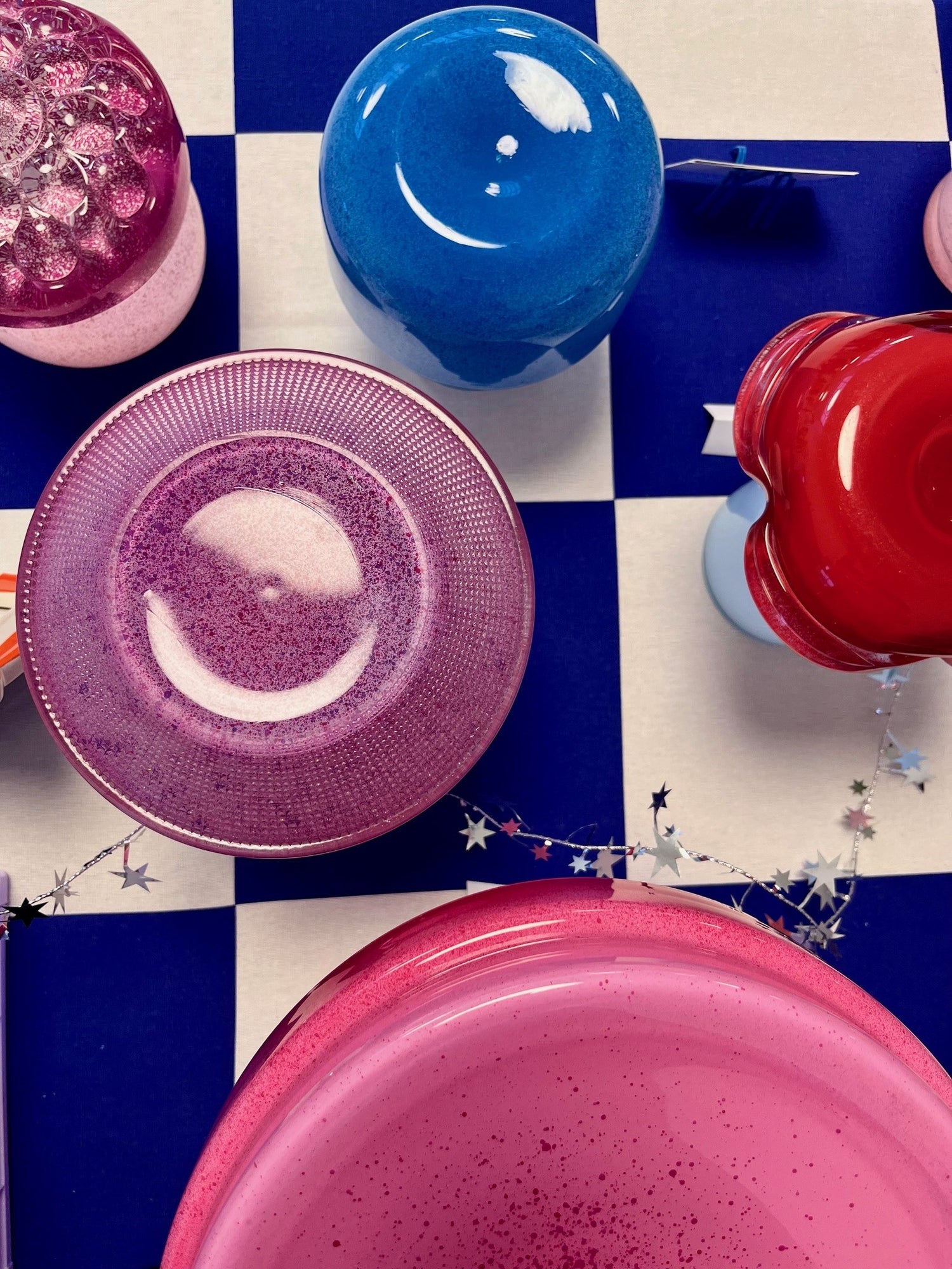 Studio Makalös turns secondhand treasures into stunning, hand-painted, cordless lamps that are truly one of a kind. Vintage bowls and vases are reborn as vibrant, functional art pieces that brighten any space. Place your lamp wherever you need a cozy glow – in you bookshelf, on your bedside table, or as the perfect centerpiece for an unforgettable dinner.