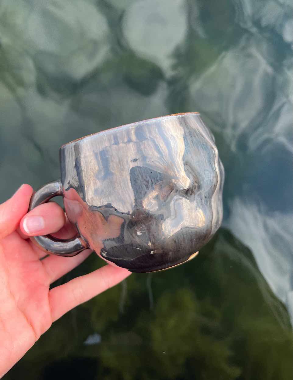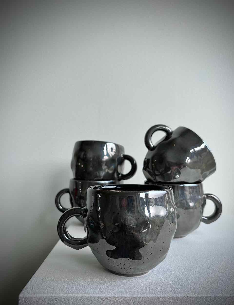 Mirroring water - large coffee cup in silver and black glaze
