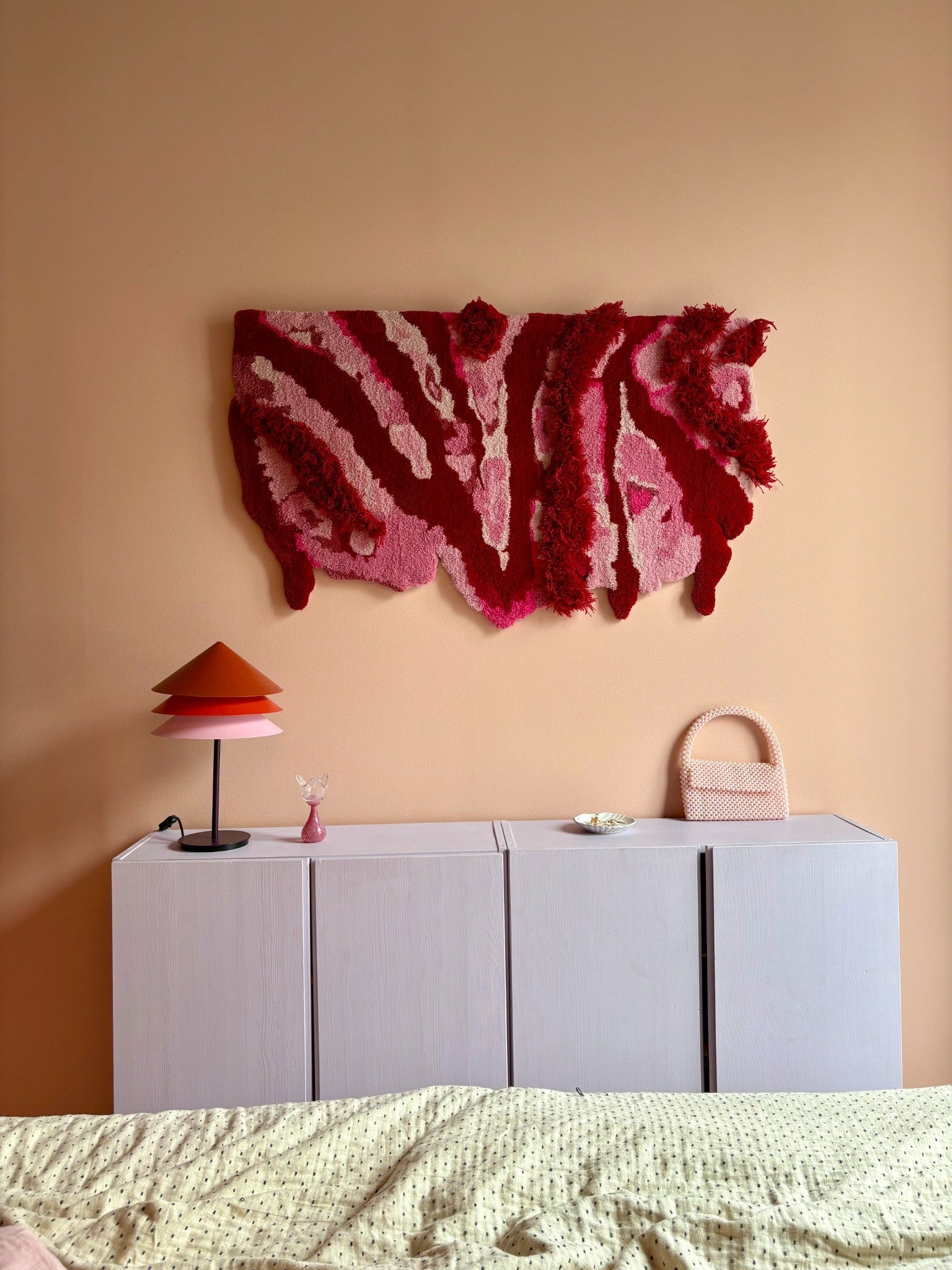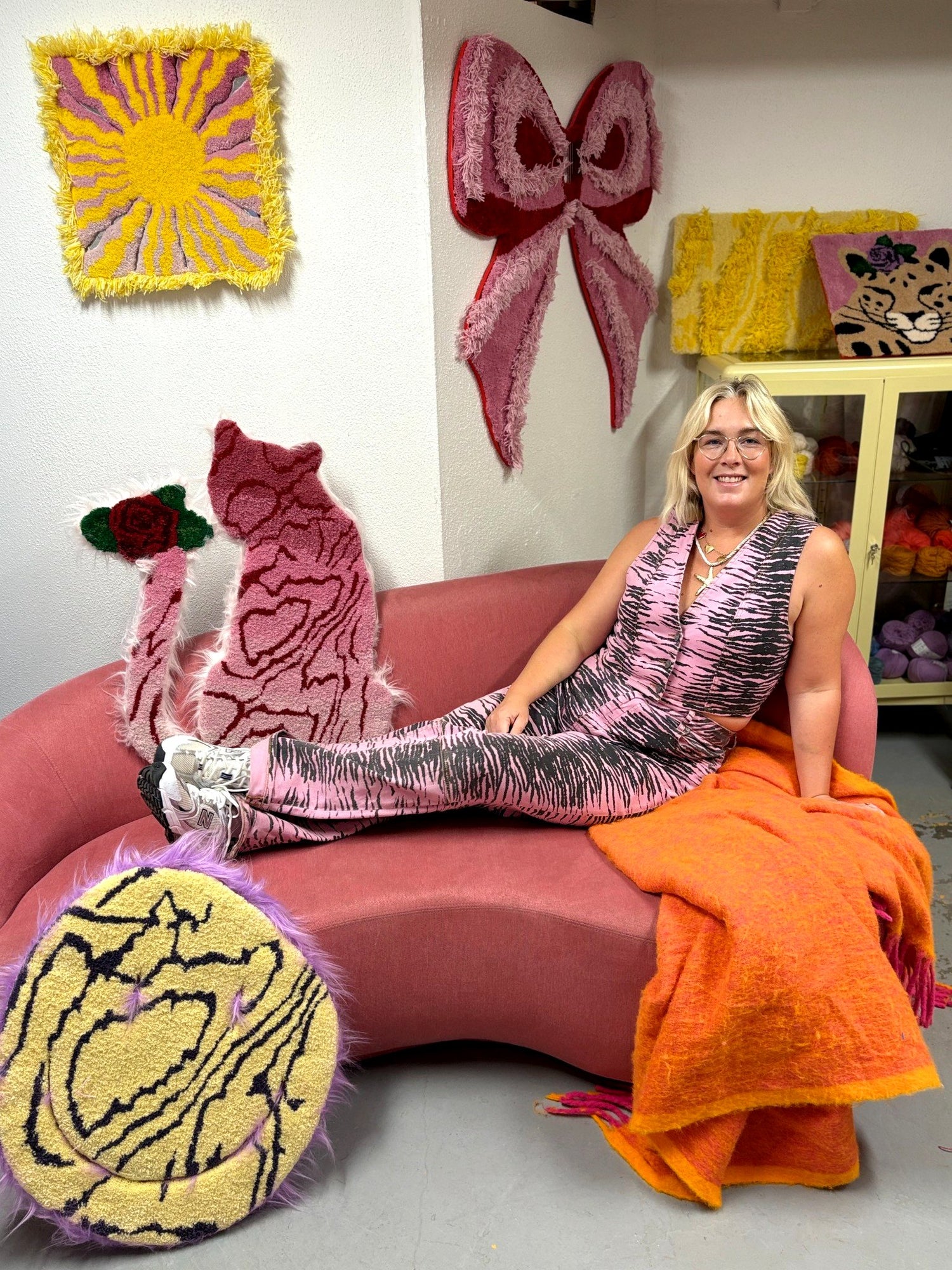 Maria is a Swedish textile artist and designer whose work explores the playful tension between joy and unease. With tufting as her main medium, she creates bold, colorful pieces that balance softness with intensity. Strongly inspired by fashion and the language of color, she translates trends, textures, and moods into tactile works that feel both familiar and slightly subversive.