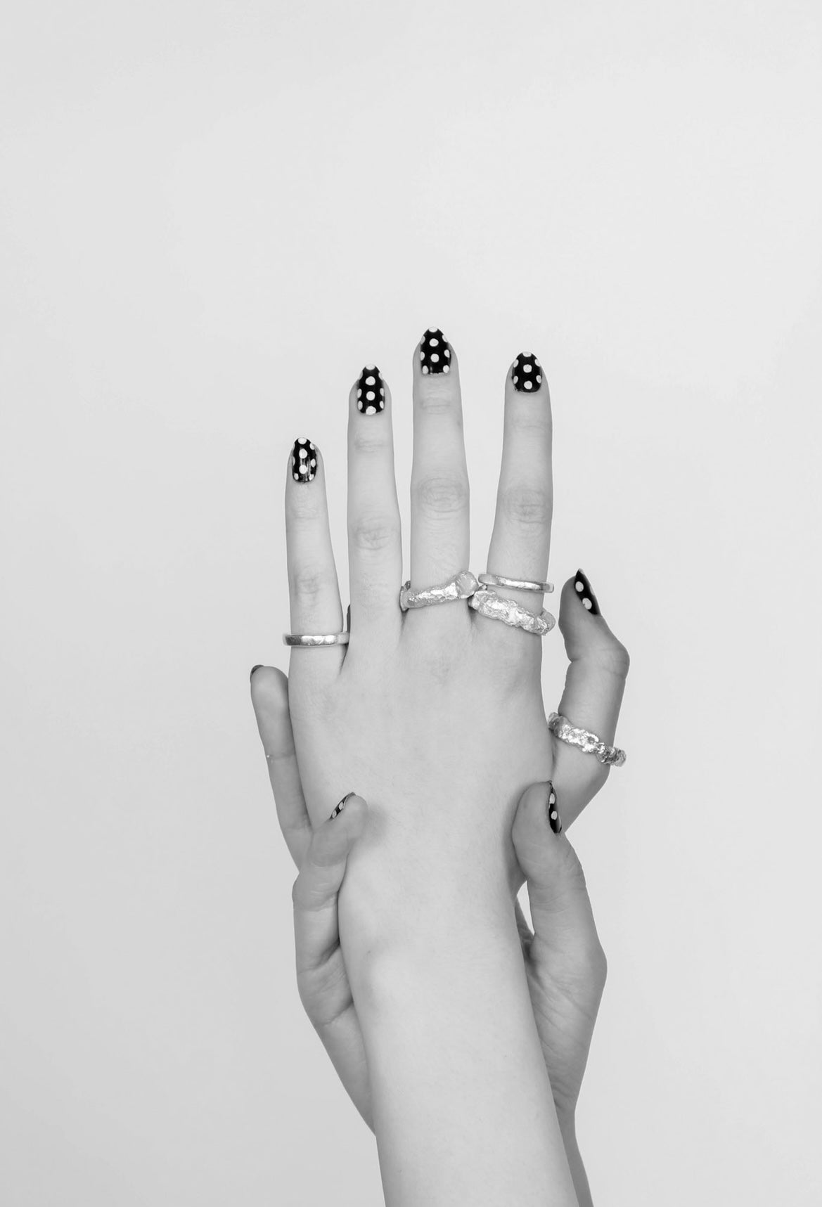 I am a silver artist creating unique, bold statement jewelry in 925 sterling silver. Each piece is organically shaped in charcoal, giving every ring its own character and making no two alike. My work is inspired by the raw and powerful nature of northern Sweden, where I come from. I am drawn to natural forms and striking creations, just like those found in the wilderness.