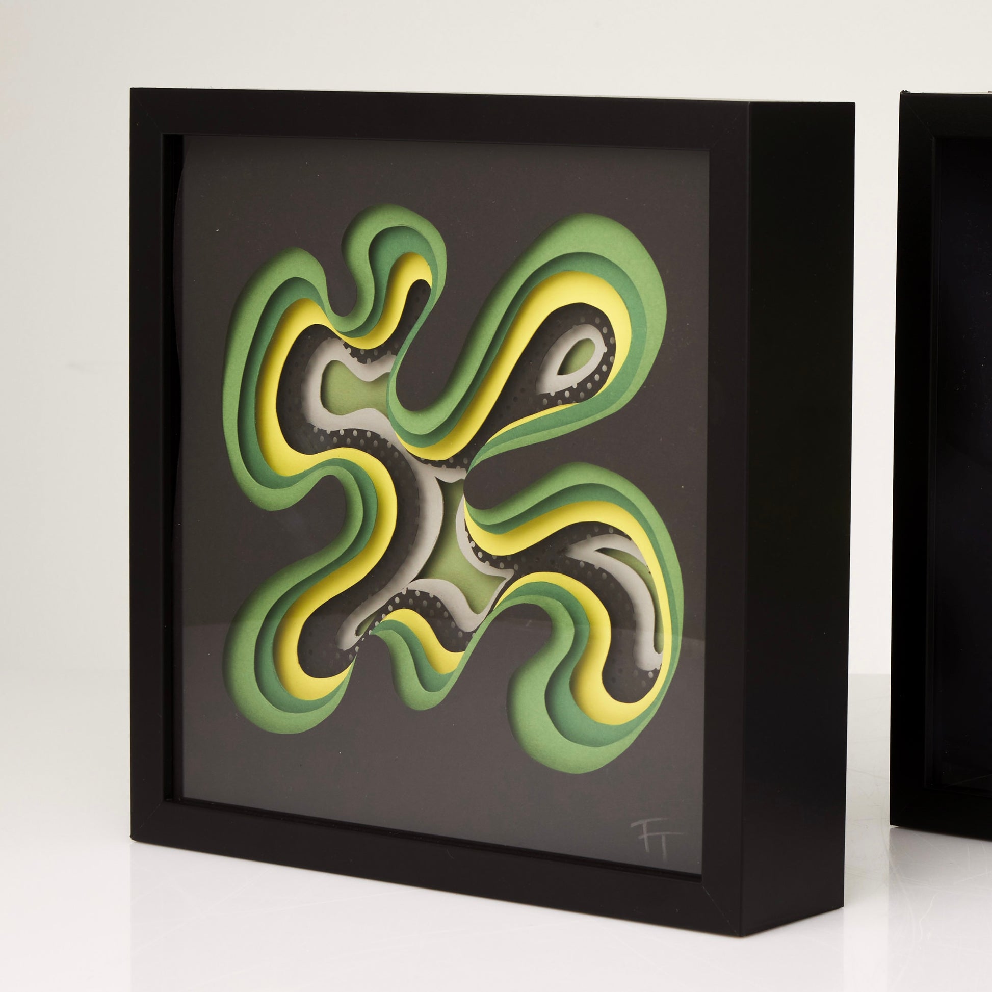 Three-dimensional tactile paper art in a box frame. Uniquely hand-cut. For those drawn to the sculptural and something beyond the ordinary.