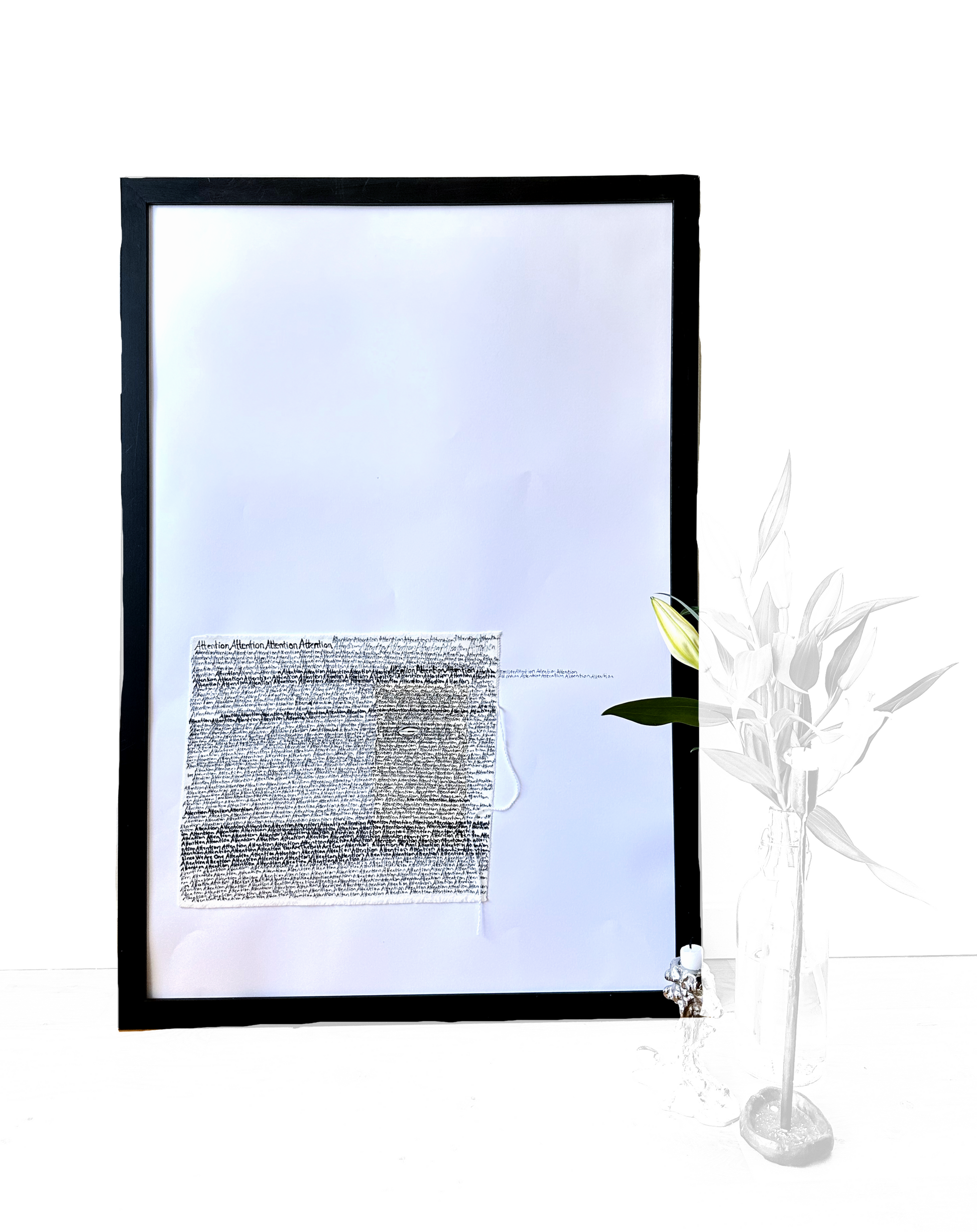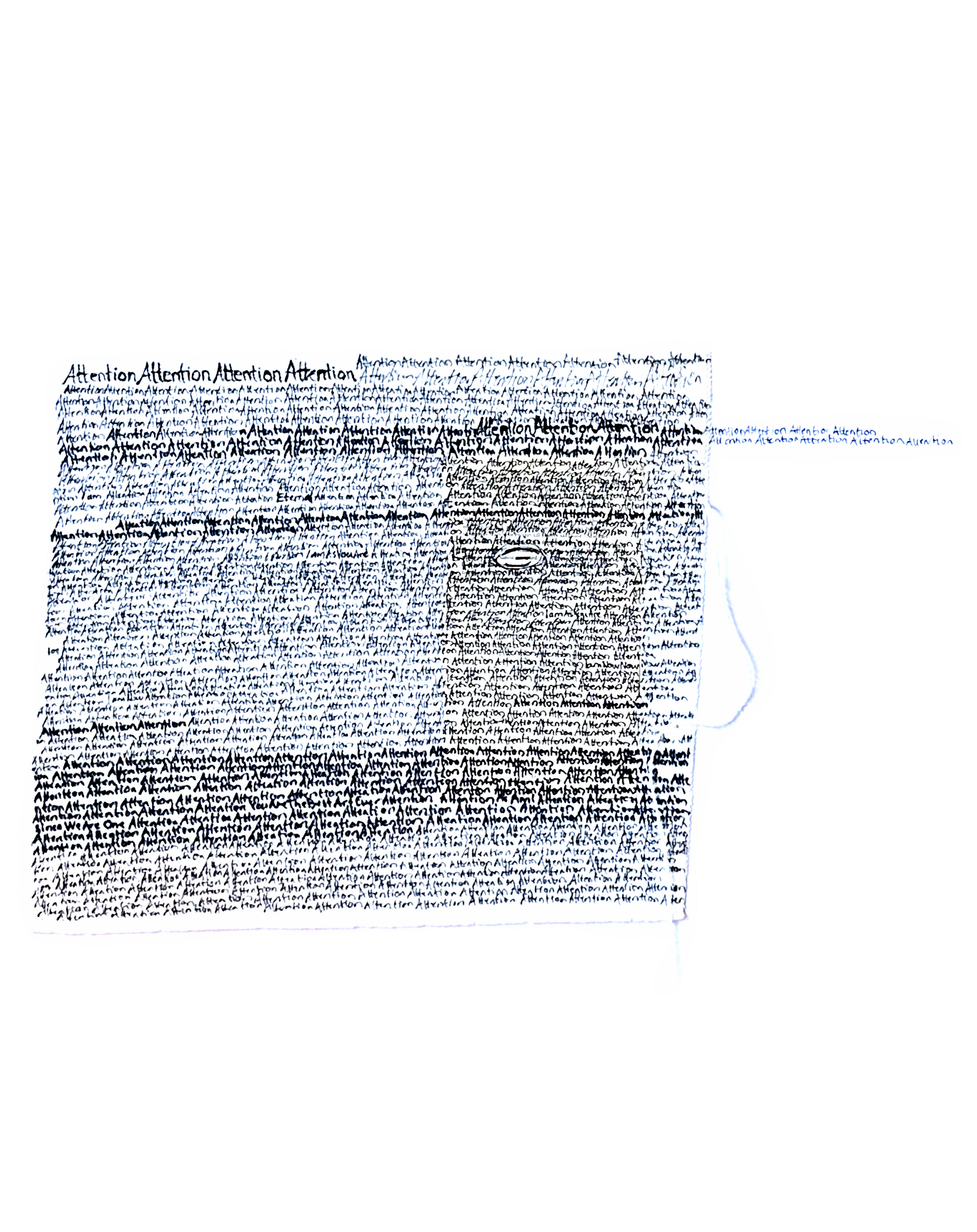 "ATTENTION" is inspired by the koans in Zen Buddhism, which are designed to quiet the mind’s activity. In these works, carefully selected words are hidden among a myriad of others. As the viewer searches for the words, they are forced to pause and give the piece genuine attention, in the same way it required mine to create them. I hope the work grants you one or several moments of stillness in an otherwise noisy world.