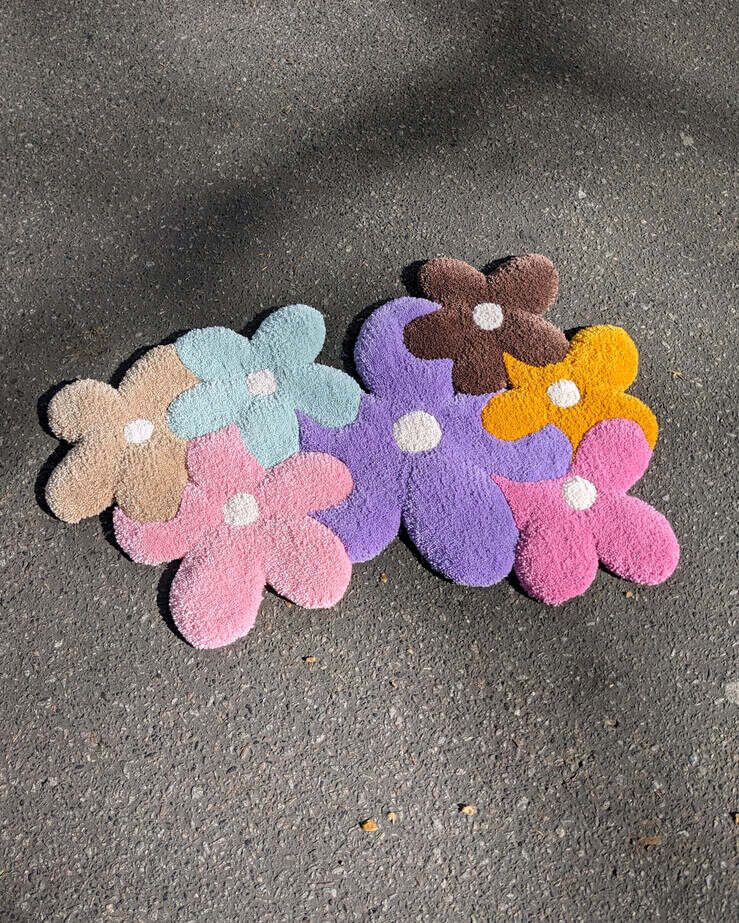 This pastel flower wool rug was handmade and designed in Berlin, Germany by Zeyu. Zeyu uses wool and her tufting gun to experiment and embrace her youthful curiosity. This rug is one of the kind and perfect for your pastel interior. Care: Use vacuum cleaner to clean. In case of need, gentle spot clean in a circular motion. Not suitable for washing machine.