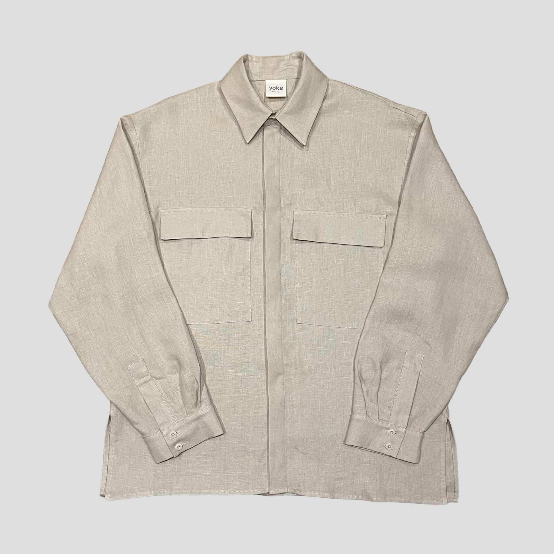 This shirt is 100% linen luxury Italian fabric, sourced from designer surplus. The buttons used are made of corozo shell and our labels are organic cotton both of which are biodegradable in a landfill environment.