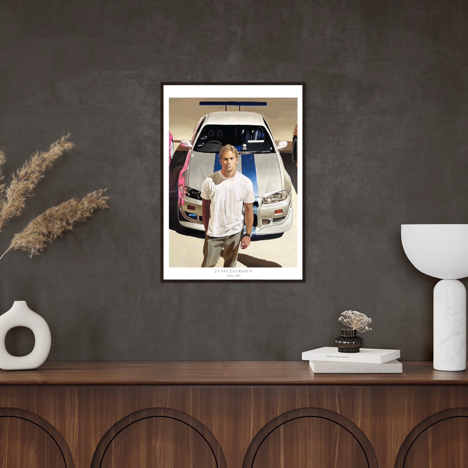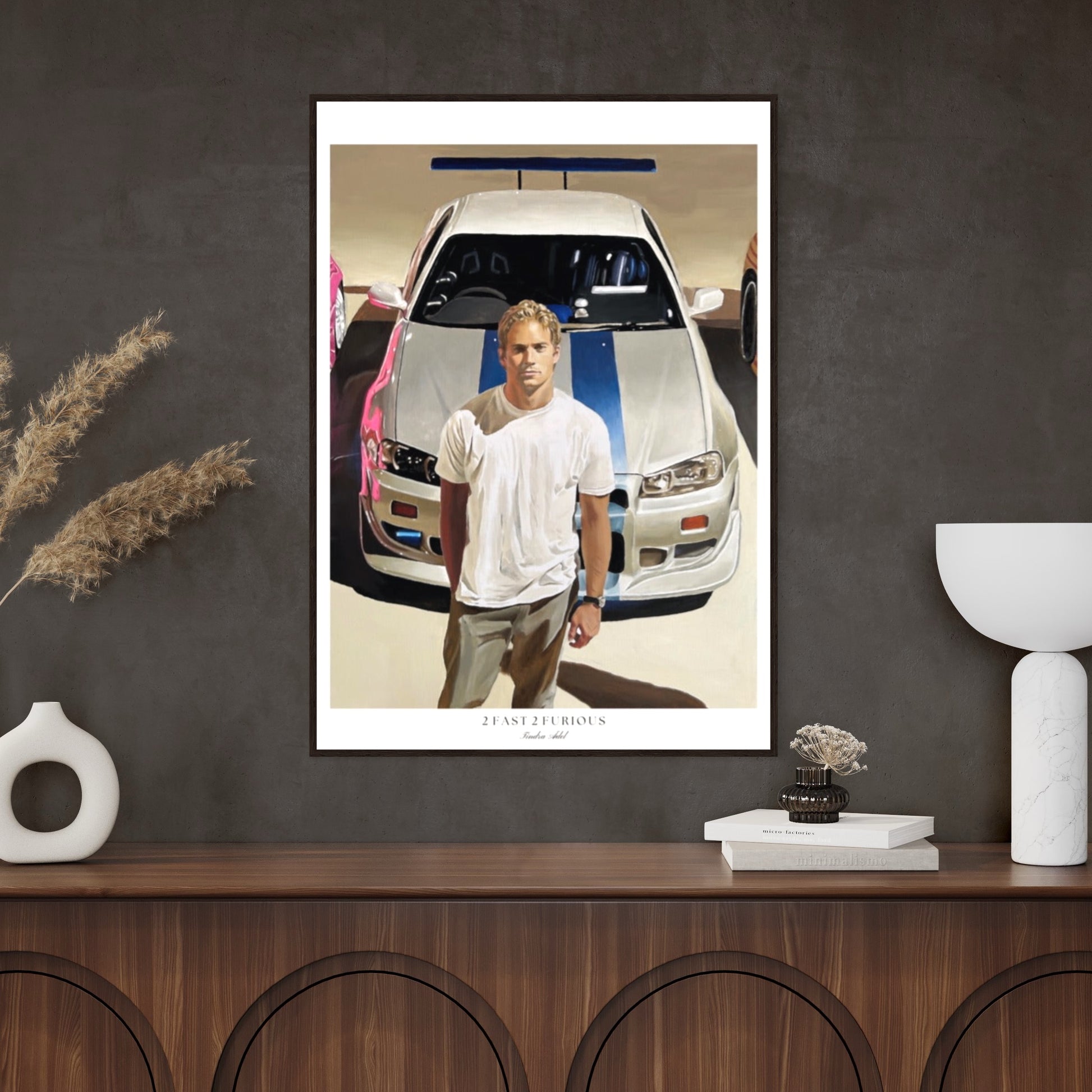 Poster of Paul Walker with Nissan Skyline R34 GT-R. Painted by Tindra Ädel. Museum-quality poster made on thick matte paper. Frame not included!
