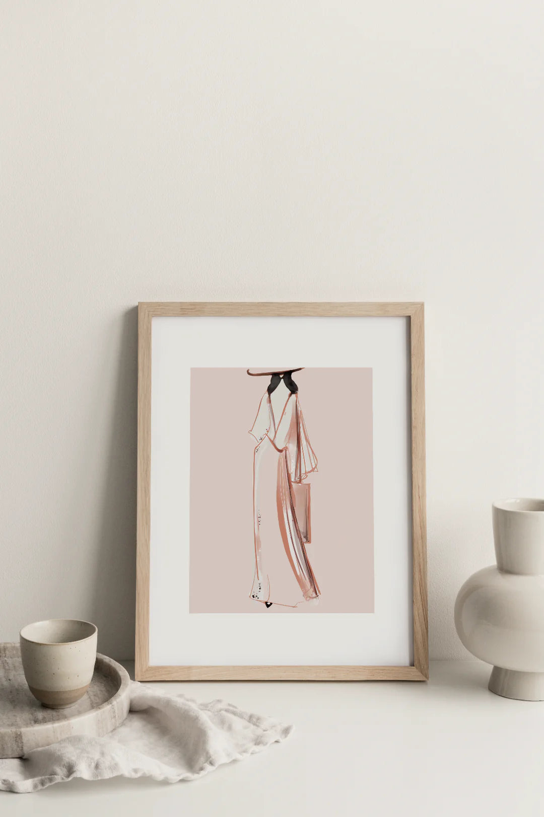 Elegant and serene, “Kimono” by Emma Älveus captures the beauty of simplicity through soft lines and muted pink tones. This graceful illustration features a minimal figure wrapped in a flowing kimono, evoking calmness, femininity, and timeless style. Perfect for bedrooms, hallways, or Scandinavian-inspired spaces, this art print blends effortlessly into any setting.